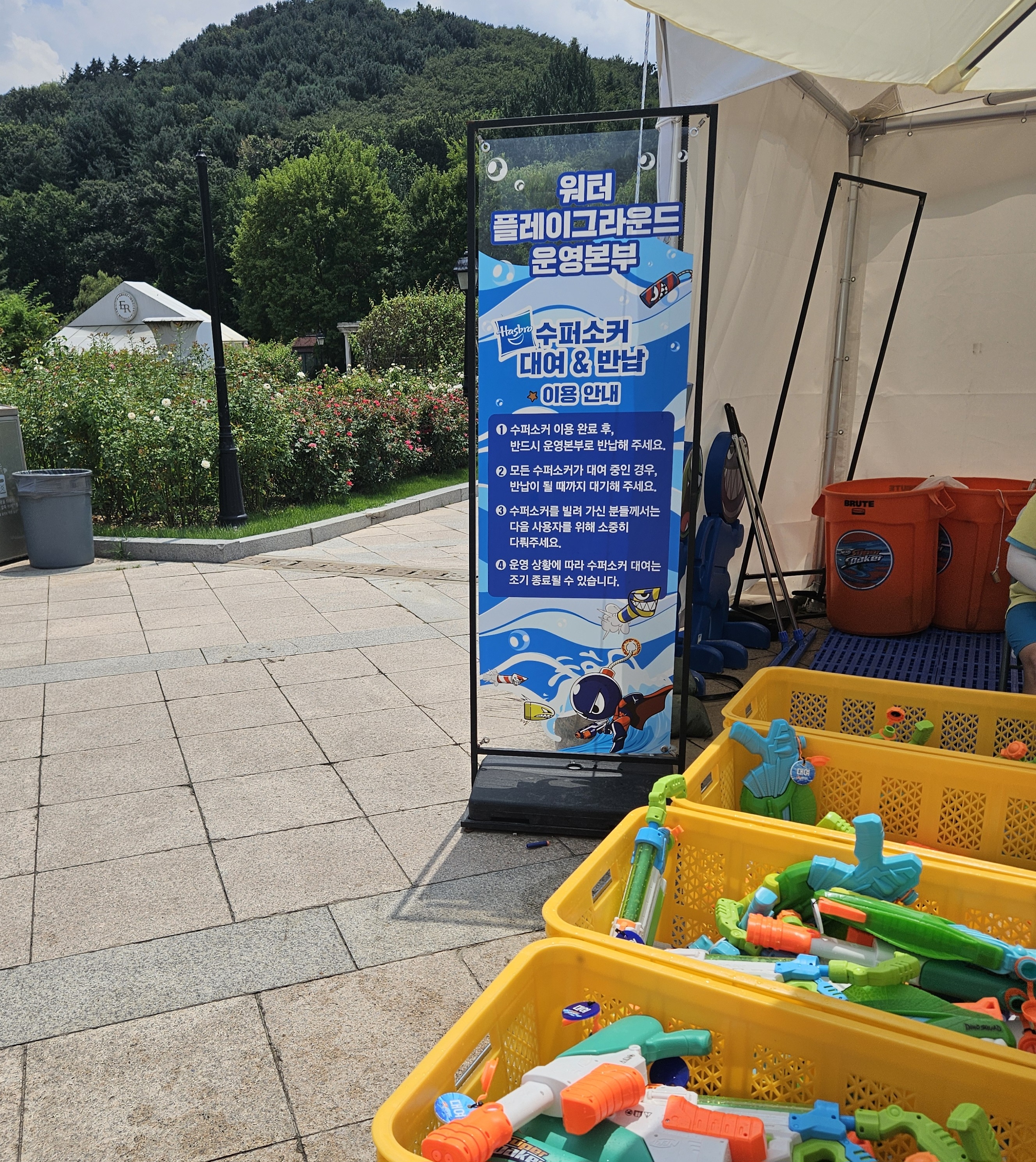 중간에 물총이 너무 무거웠는지 물총을 바꾸고 싶다고 해서 어떻게 하지 고민을 했는데 한쪽에 보니 워터 운영본부 부스에서 물총 대여 무료로 해주고 있더라고요. 그래서 작은 총을 빌렸고 바로 옆 부스에는 SNS 이벤트까지 진행하고 있는 것 같으니 참고 바랍니다.