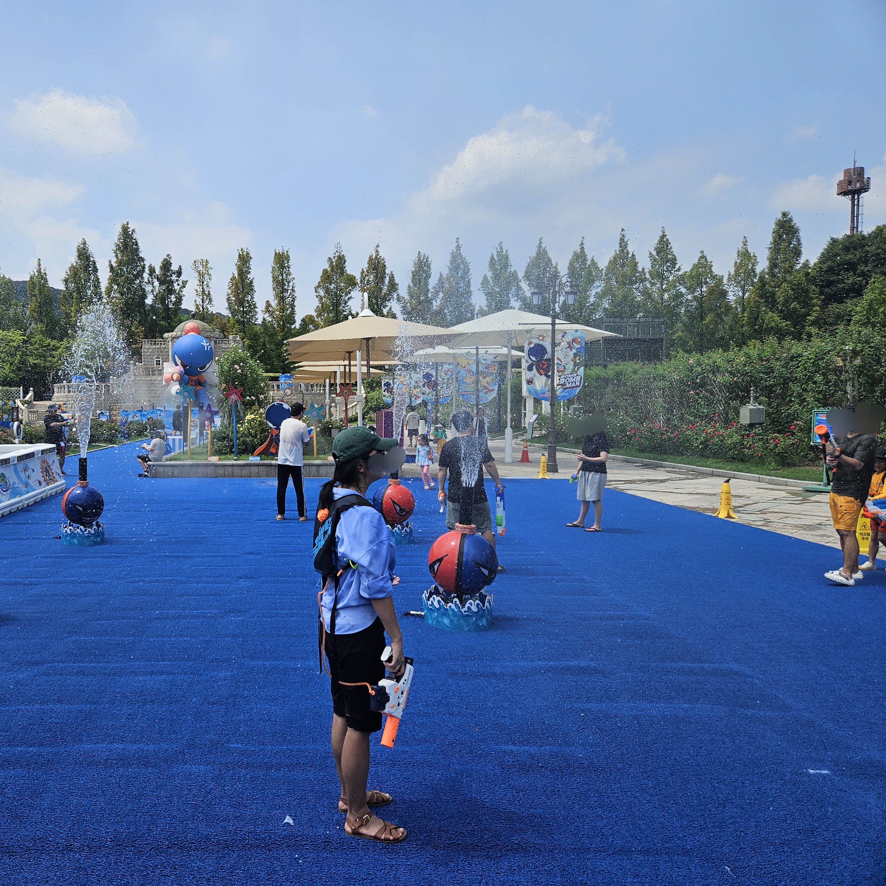 아들이랑 저는 춤 타임은 그렇게 관심이 없어 바로 물놀이하러 장미원 안으로 들어갔는데요. 남녀노소 할 것 없이 옷이 홀짝 젖으면서 놀았는데요.