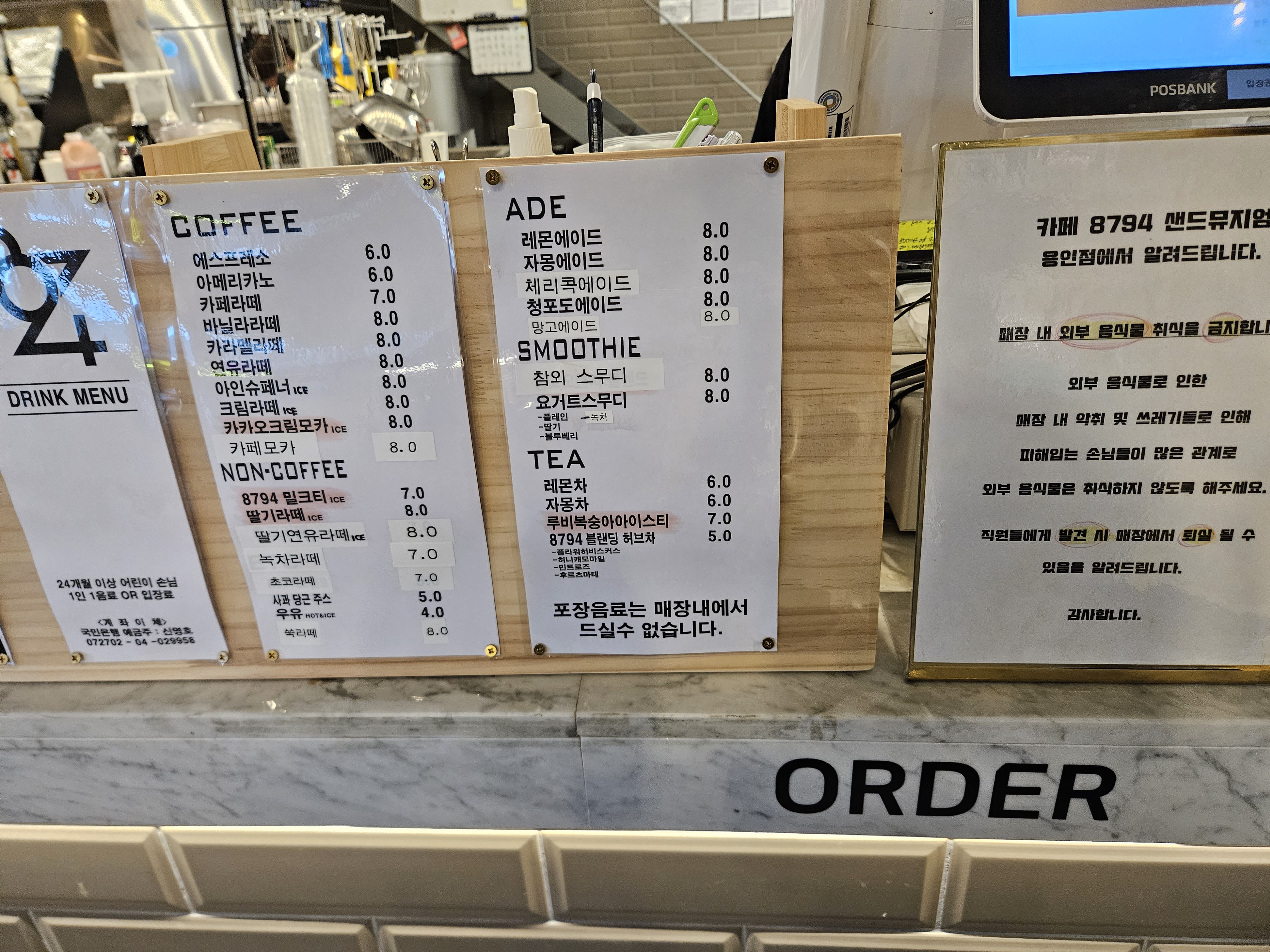 카페8794 용인점은 1동, 2동, 3동으로 나눠지는데요. 우선 1동은 음료나 브런치 등등 계산하는 카운터가 있고