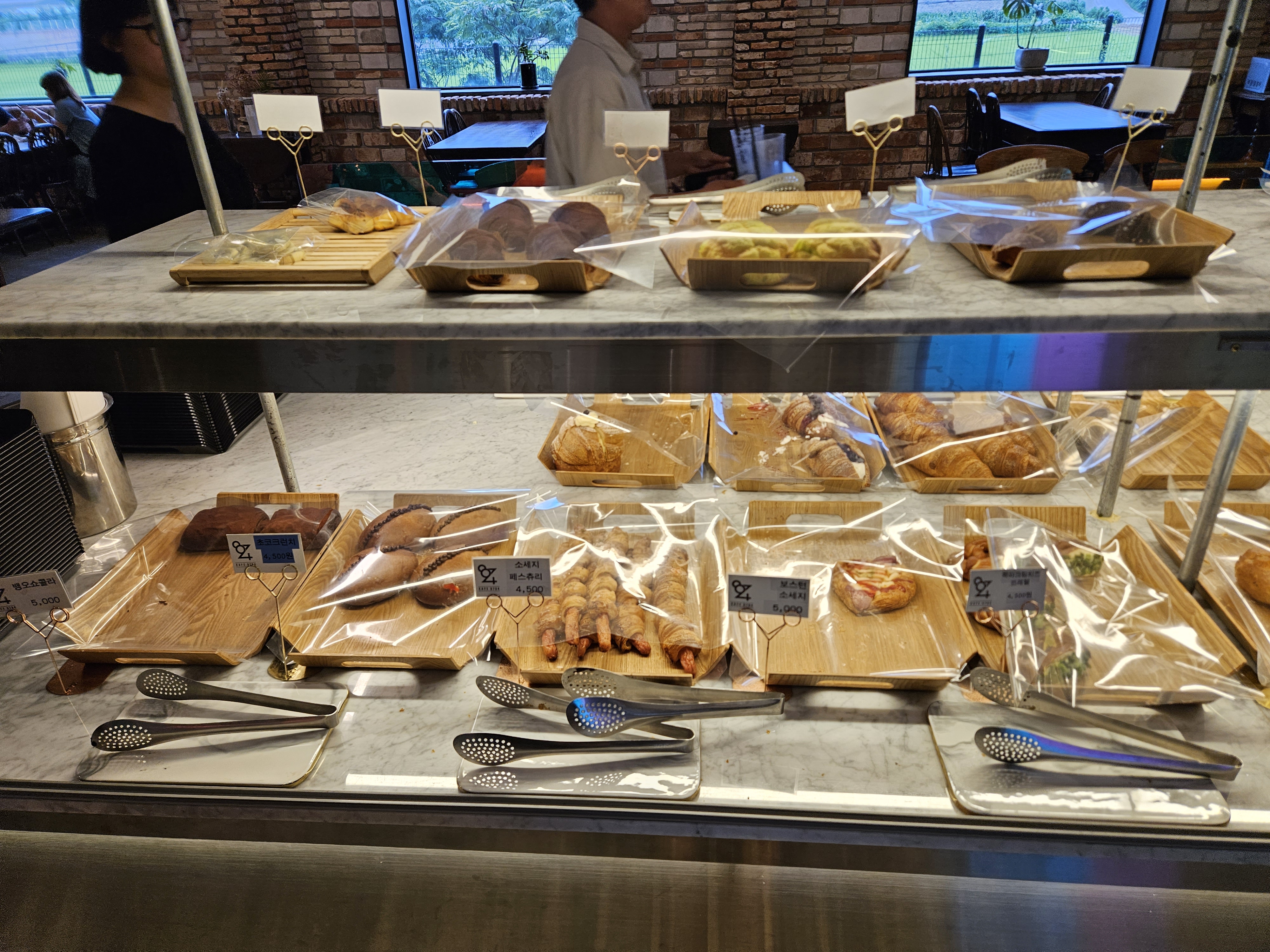 그리고 테이블도 생각보다 많고 빵도 정말 먹음직스럽게 전시되어 있었는데요. 빵을 좋아하는 우리 가족이 그냥 넘어갈 일 없죠 각자 먹고 싶은 빵이랑 음료를 골라 모래놀이할 수 있는 곳으로 이동을 해보았습니다.