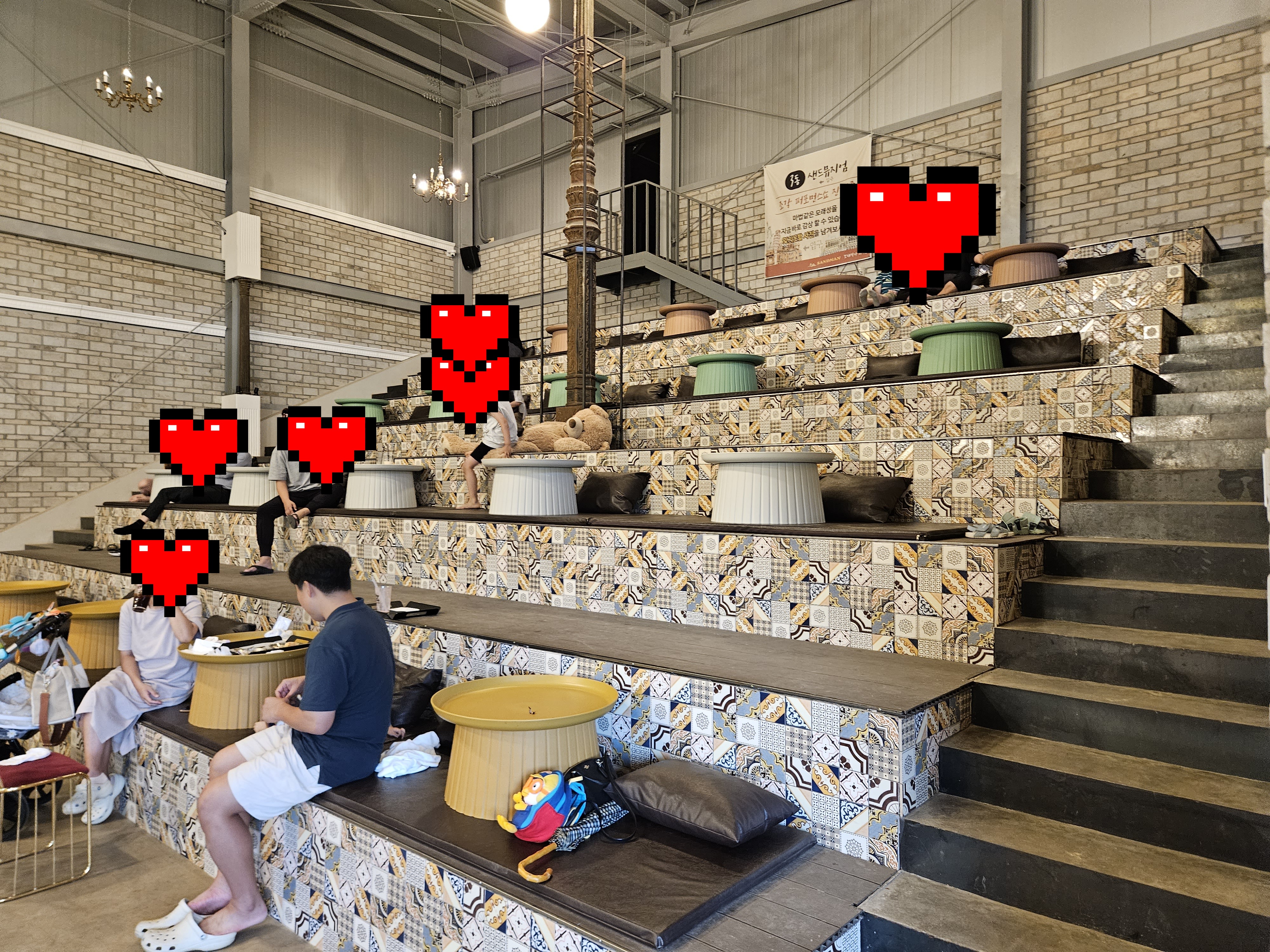 작은 분수 및 사자동상을 지나 도착한 2동은 계단 테이블이 인상적이었고 연인들이나 여성친구 두 명이서 방문했을 때 많이 이용할 것 같은 느낌을 받았습니다.