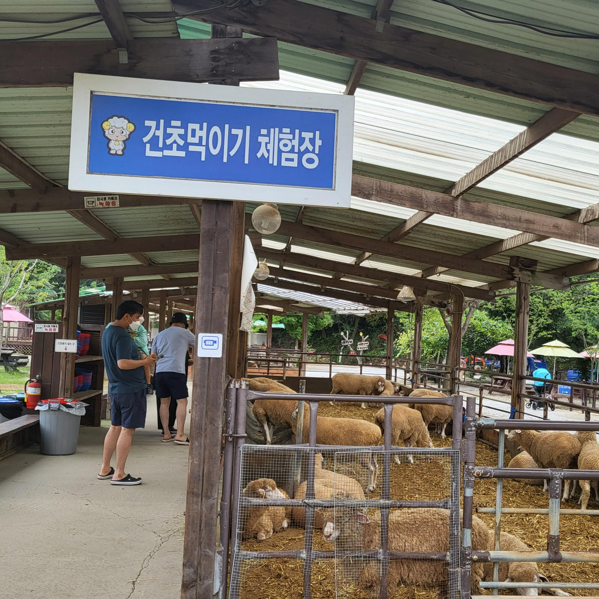 매표가격은 평일,주말 동일하게 1인당 6,000원이고 결제한 인원수에 맞춰 양한테 먹이 체험할수있도록 건초를 사장님이 나눠줍니다. 바로 앞에 건초 먹이기 체험장이 있어 체험을 해보았는데요. 손으로 양한테 건초를 주고 싶었지만 안내문에 양한테 물릴수도 있다고 해서 뒤에 배치되어있는 바구니로 건초를 담아 양한테 먹이를 줘보았습니다.