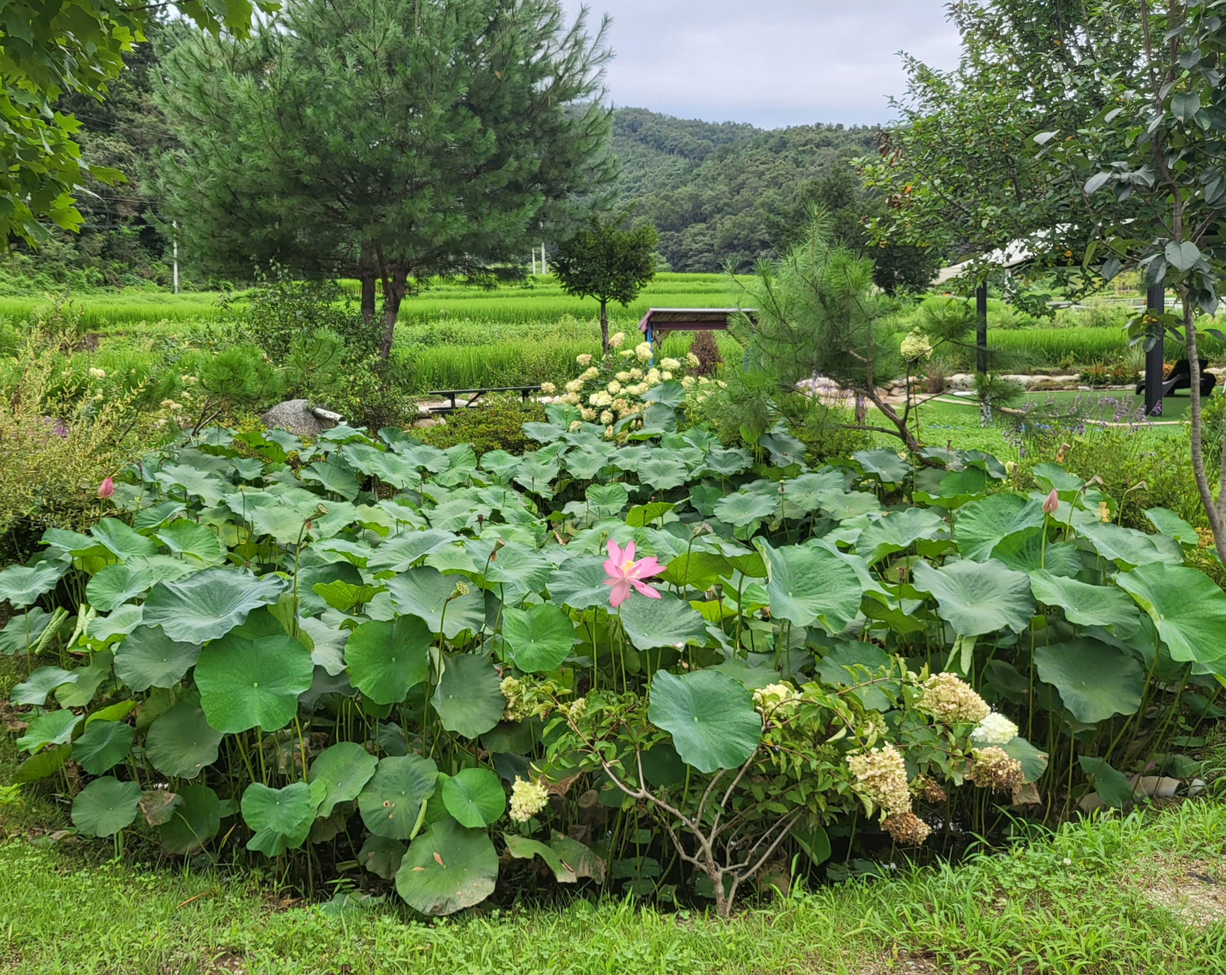 드디어 양떼 목장에 도착 양떼 목장 근처에 쉼터도 있고 바로 앞에 수레 처럼 생긴 의자가 있어 아들이랑 사진한장찍고 양에는 이제 흥미를 못느껴해서 위로 더 올라가보았습니다.