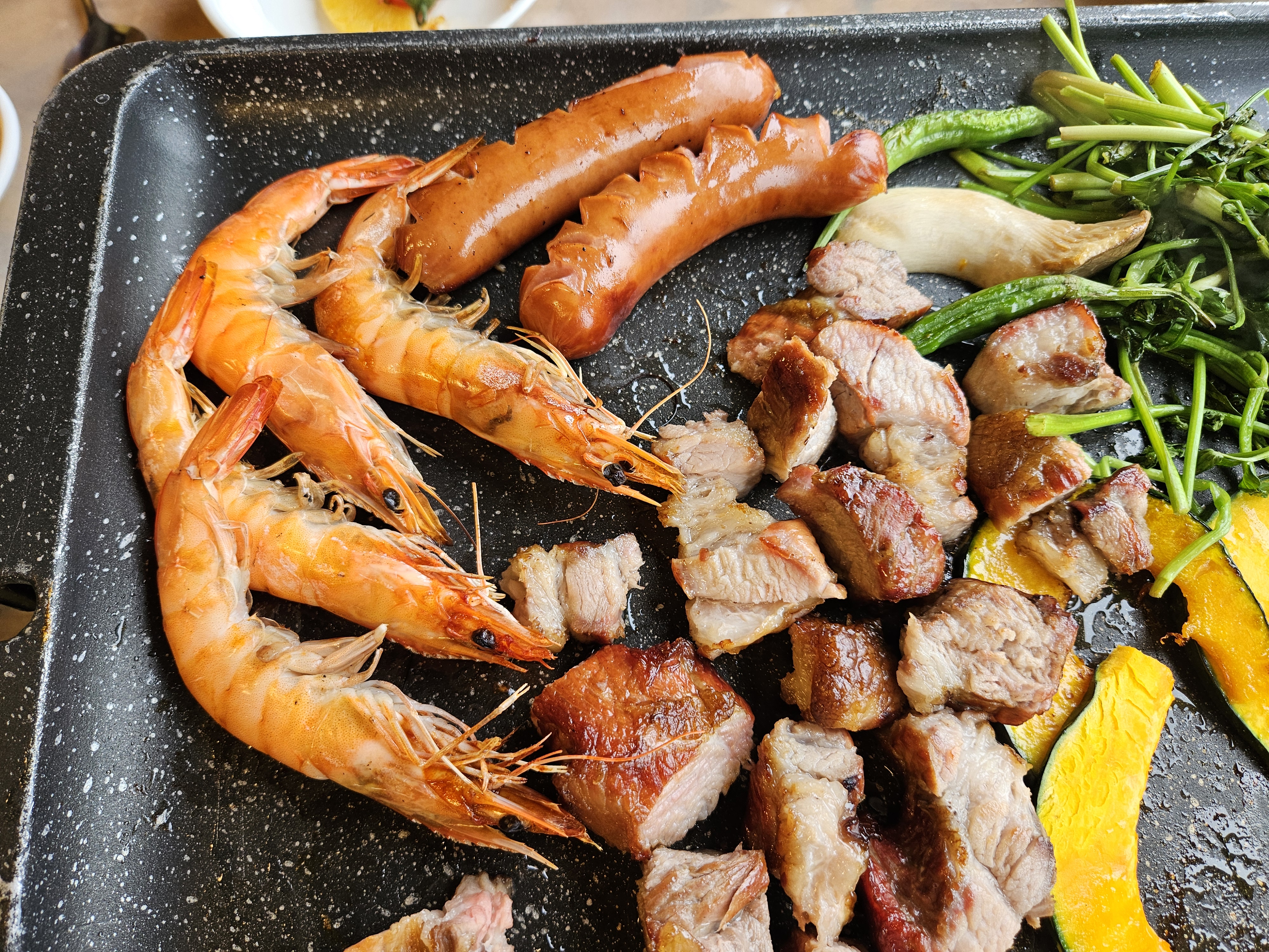 고기뿐 아니라 새우랑 소세지도 구워 먹을 수 있어 좋았답니다. 특히 소세지는 와이프랑 저는 맛만 보고 만 3세 아들이 다 먹었지만요.