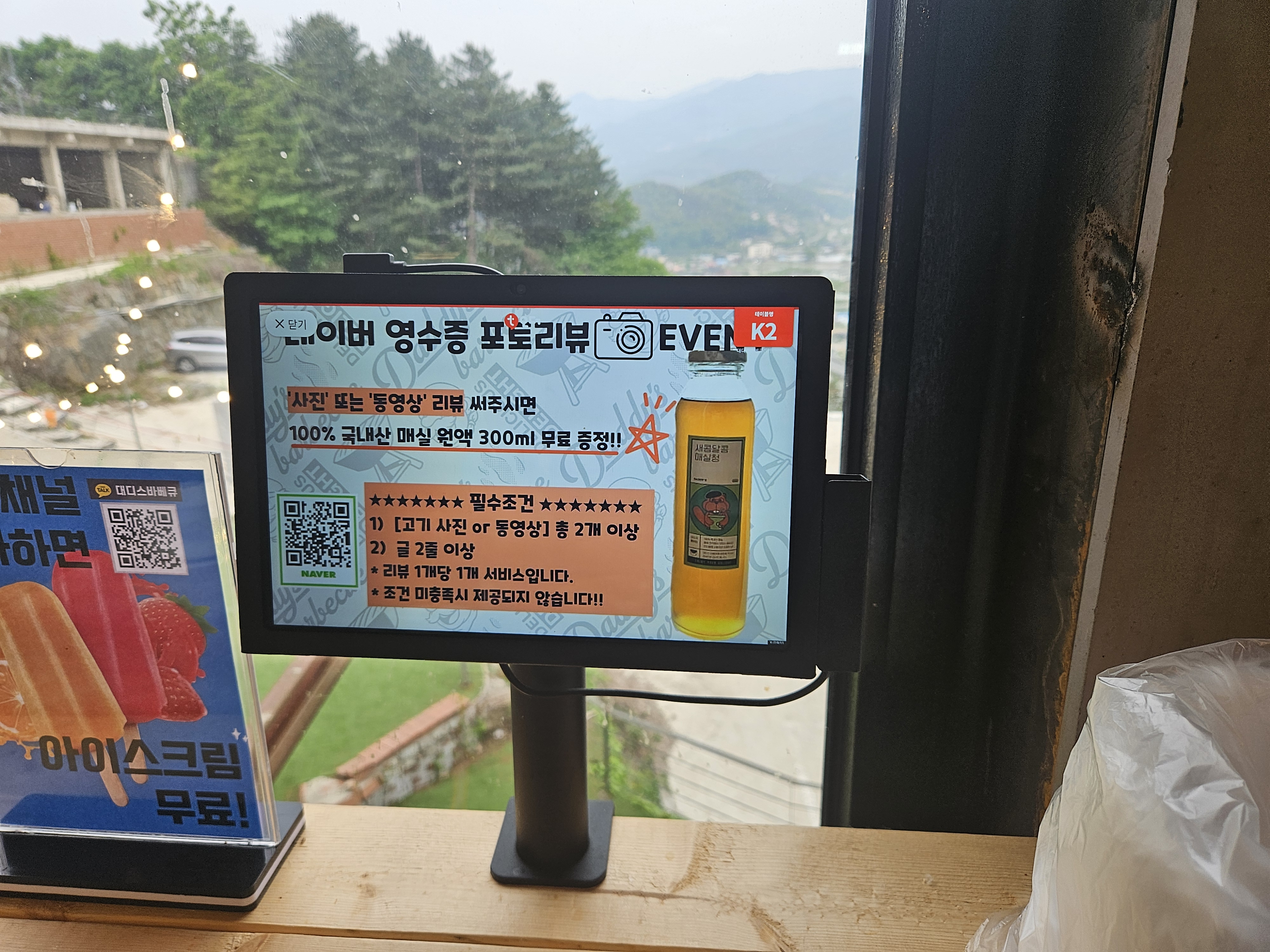 음식을 다 먹은 뒤에는 후식으로 커피를 뽑아 먹을 수도 있고 대디스바베큐 카카오채널 친구 가입을 하면 가입한 사람당 아이스크림을 공짜로 먹을 수 있었습니다. 그리고 네이버 영수증 리뷰를 올리면 매실 원액을 선물 받을 수 있는 듯했는데 저는 하지 않았답니다.