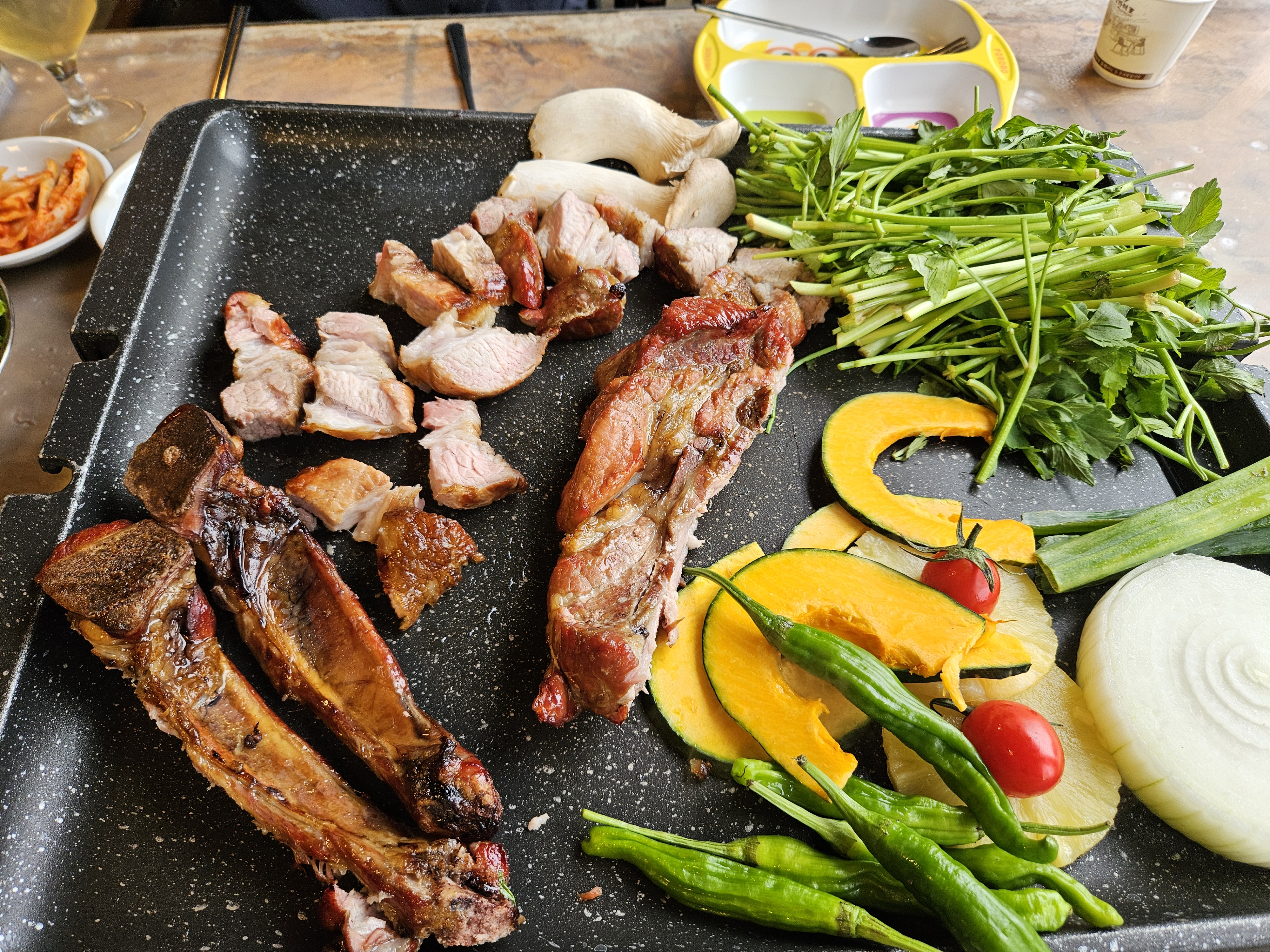 그렇게 첫 번째 고기인 항아리바베큐를 다 먹은 뒤 두 번째 고기인 통갈비바비큐도 구워 먹어 먹어보았는데요.