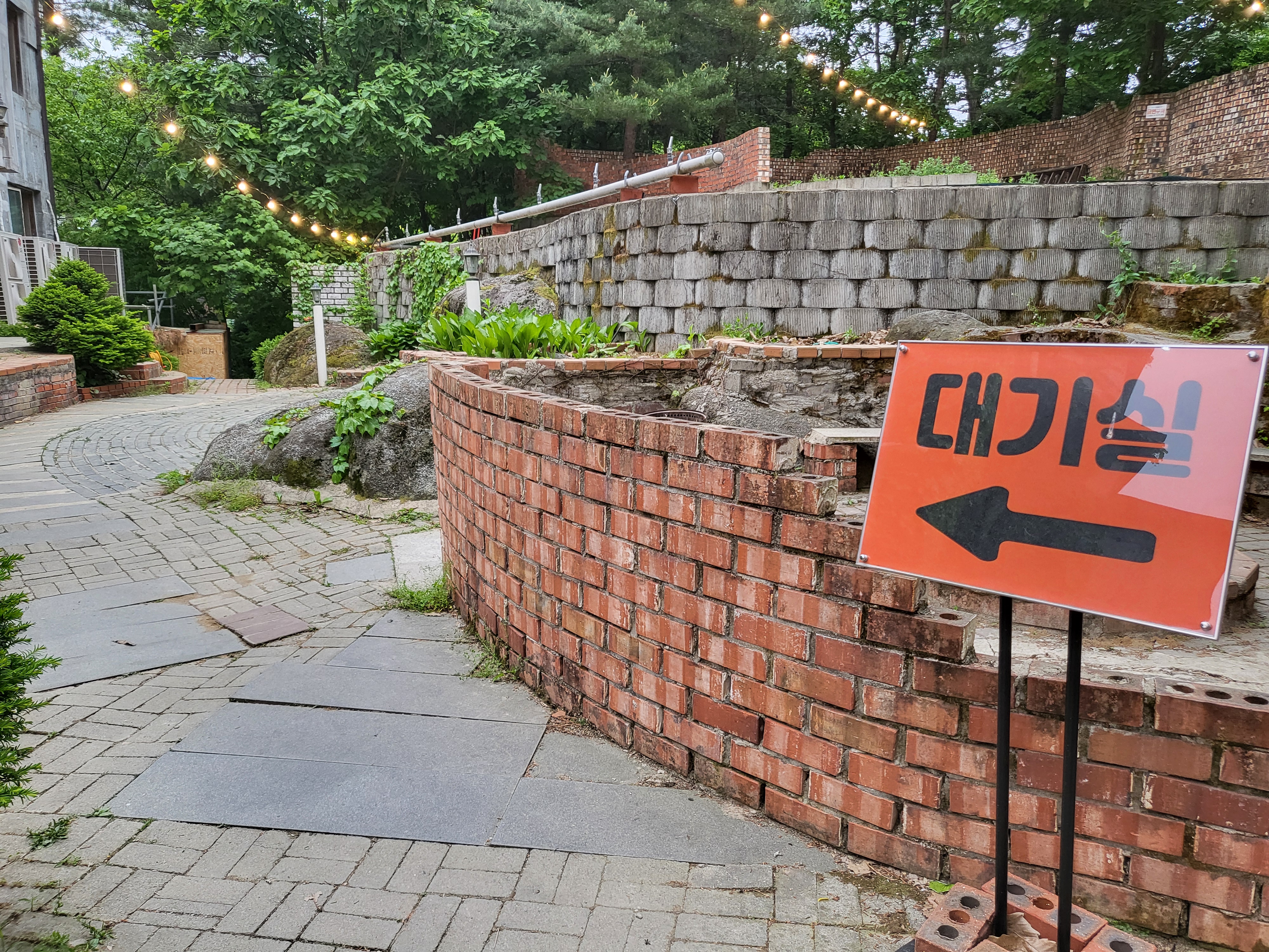 그렇게 돌계단을 따라 올라가면 2층에 식당 입구가 있었고 바로 위에도 또 돌계단이 있었는데 불멍존, 대기실로 가는 길있었습니다.