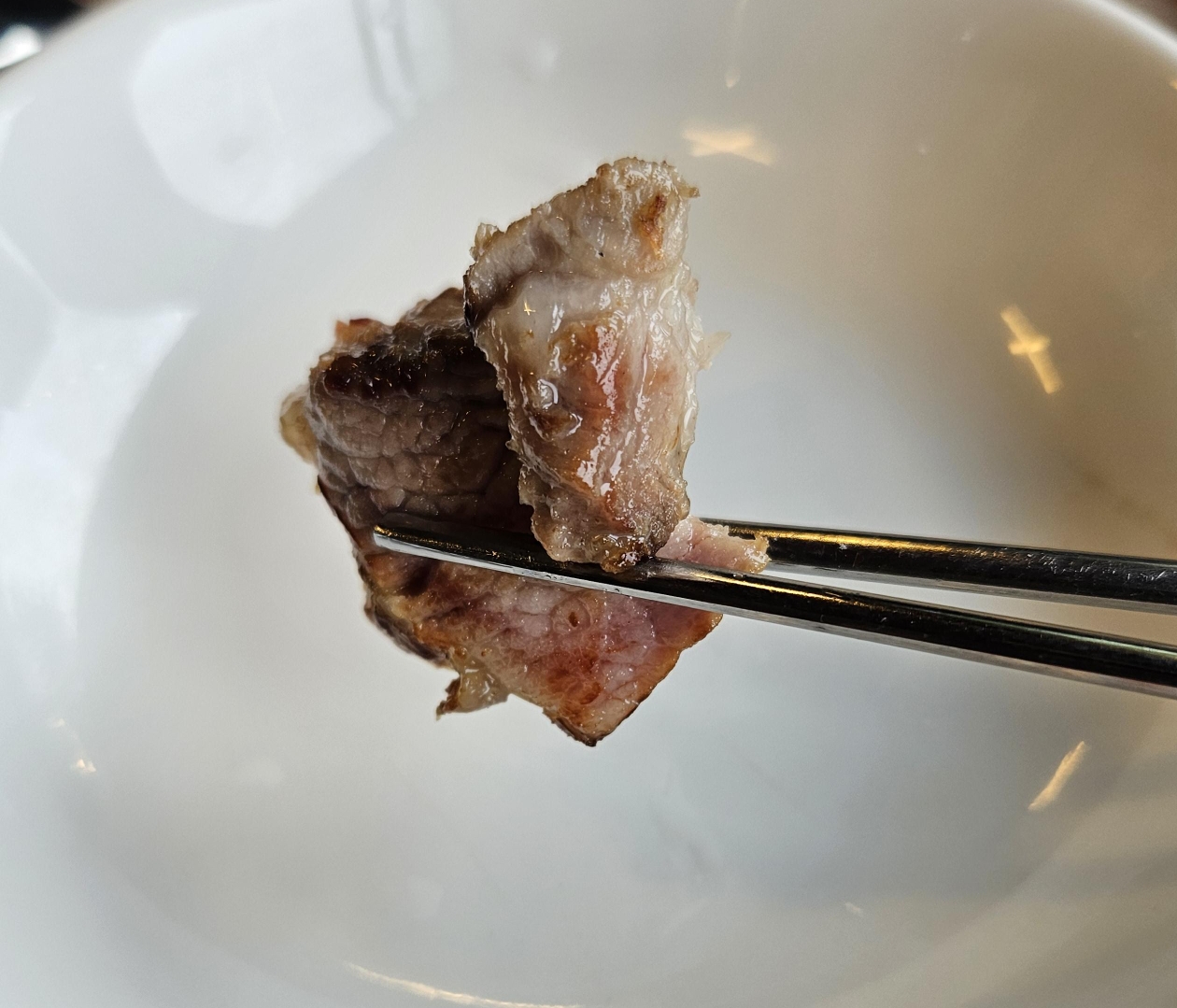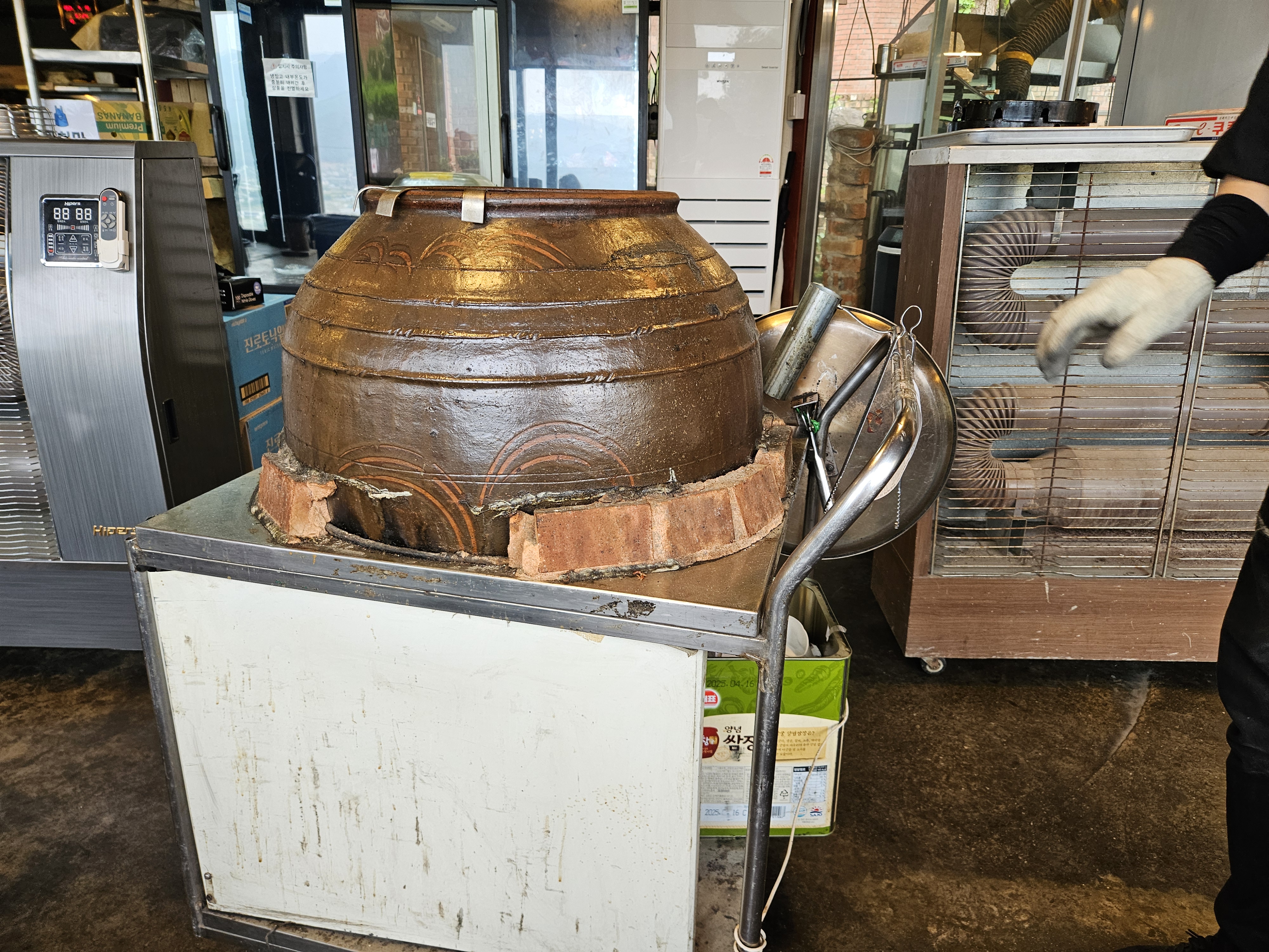 그리고 직원분이 항아리를 끌고 오시더니 고기 두 덩이를 꺼내주셨는데요. 항아리를 통해 미리 익혀서 나왔는지 겉이 정말 바삭해 보이는 게 맛있어 보이더라고요.