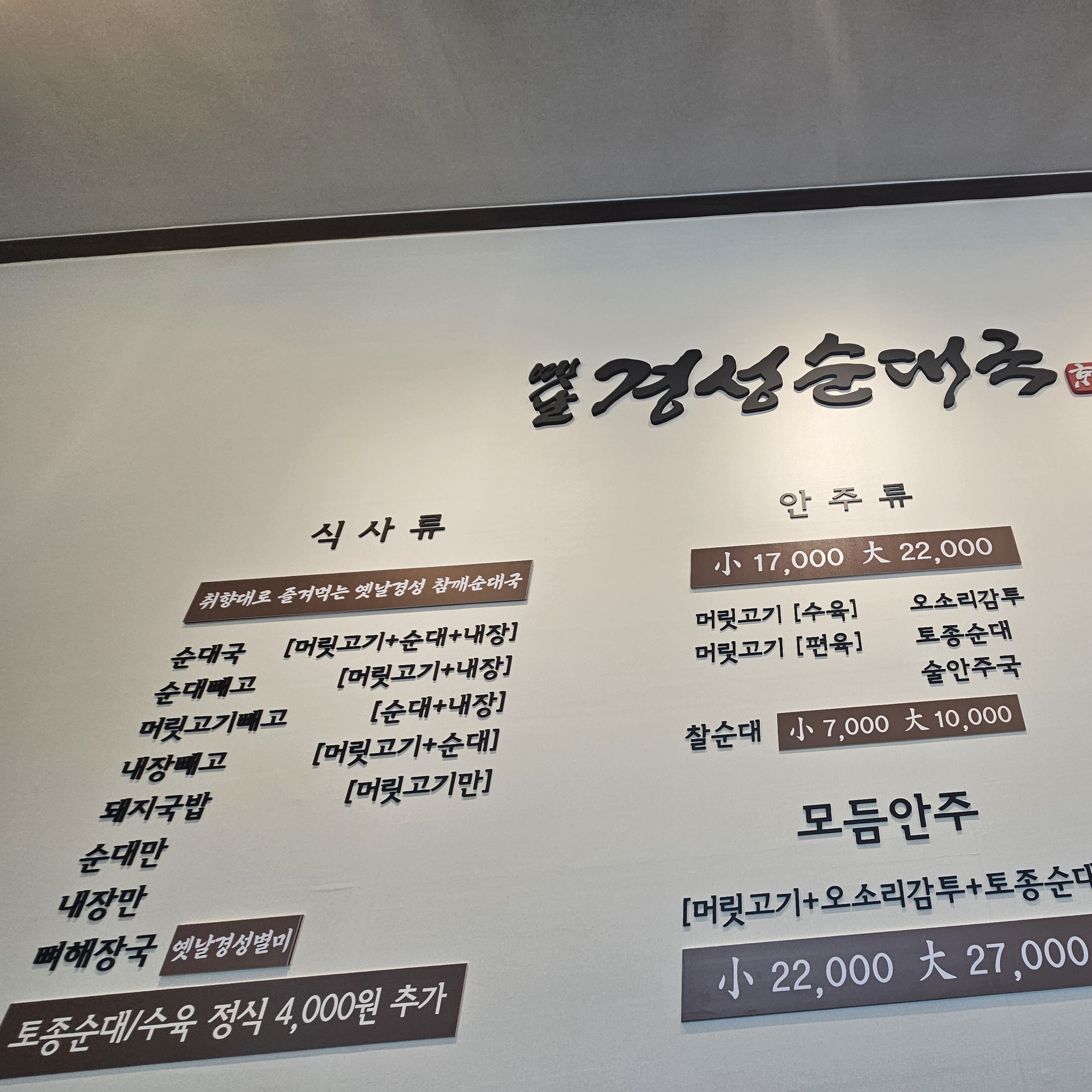 저희가 주문한 음식은 순대국 2인분에 순대정식 2인분을 주문을 했는데요. 와이프는 내장 섞어서 잘 안 먹는데 여기선 그냥 시켜서 먹더라고요.