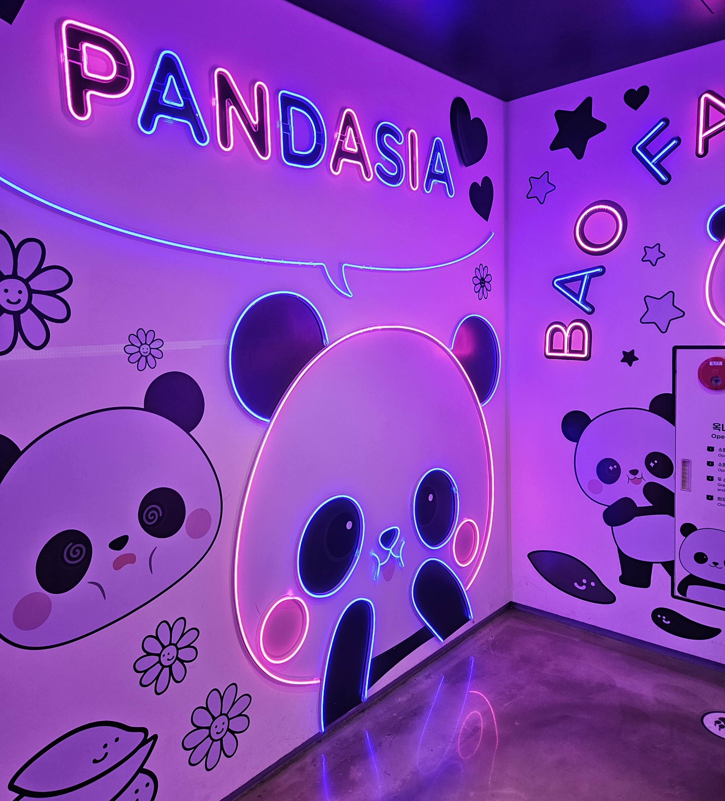 벽 스크린에 나오는 판다가 귀엽다면서 사진 찍어달라고 해 한 장 찍어줬는데 하는 행동이 어찌나 귀엽던지.