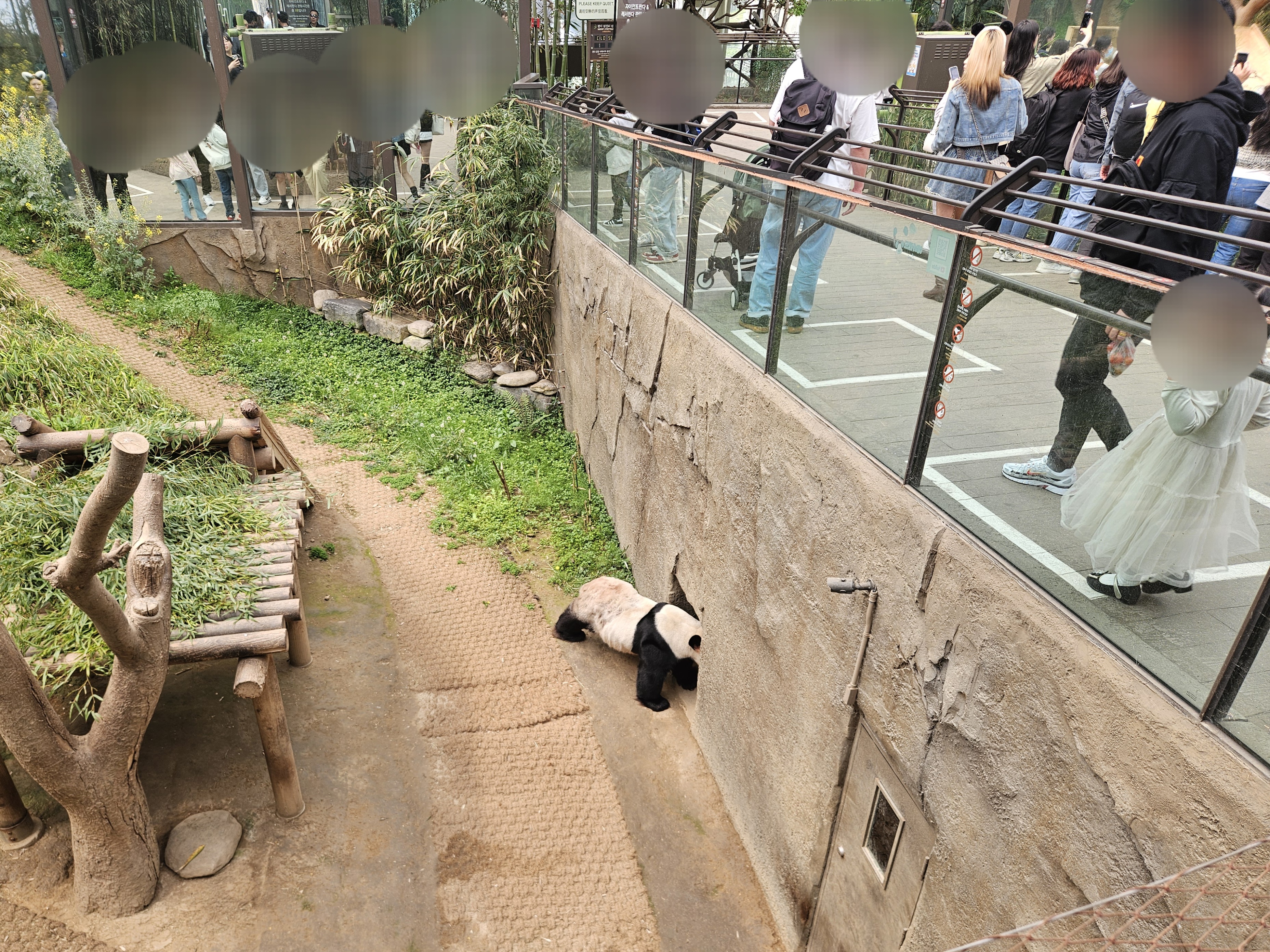 1월 초쯤 인터넷 뉴스로 쌍둥이 판다 루이&후이바오를 접했을 때랑 다르게 약 4개월밖에 안 됐는데 벌써 엄청 커있어서 깜짝 놀랐답니다. 그렇게 관람시간 5분이 지나 직원분이 통제해 주더라고요. 자이언트판다를 구경하고 나가면서 레서판다도 구경하고 싶었지만 방문당시 없어서 조금 아쉬웠답니다.