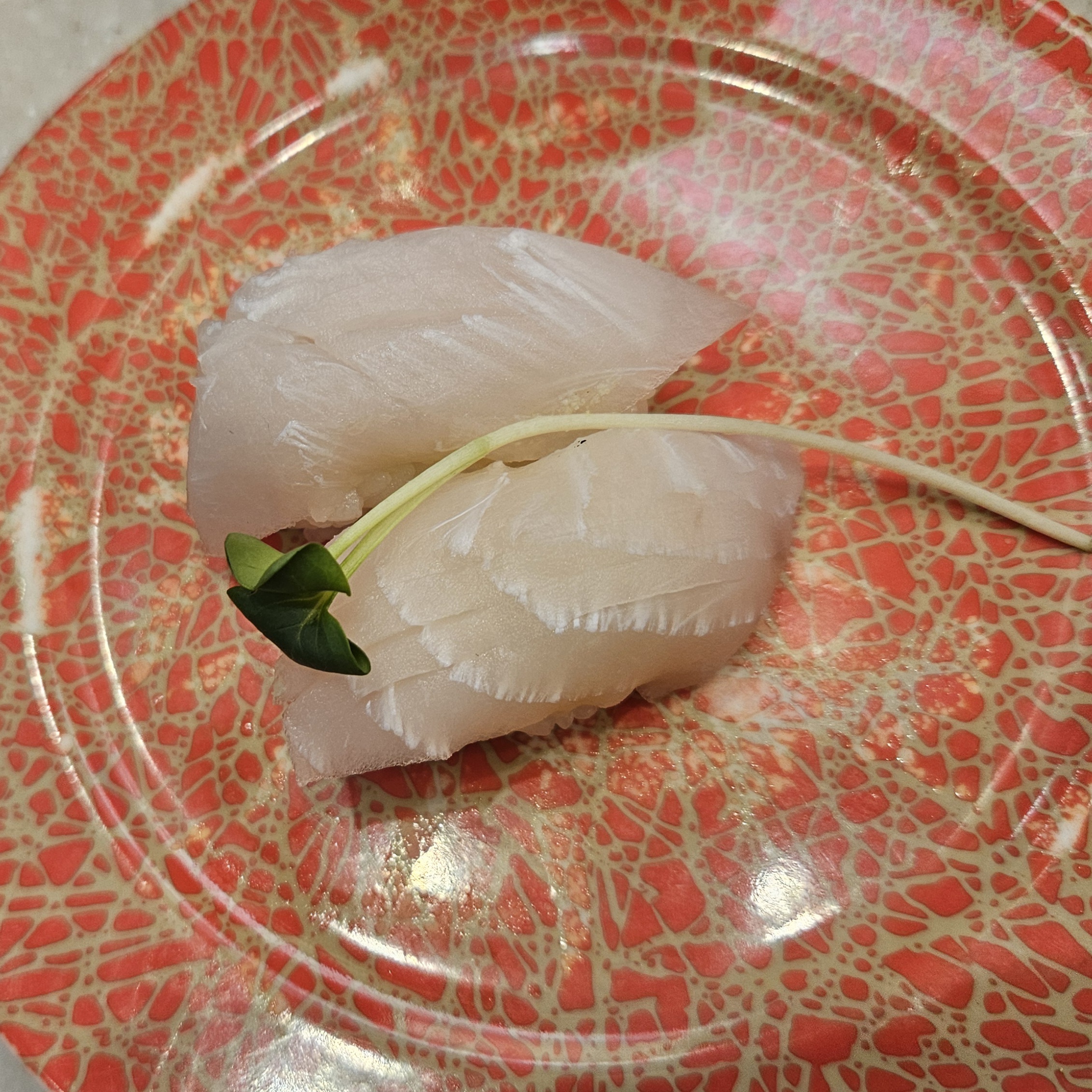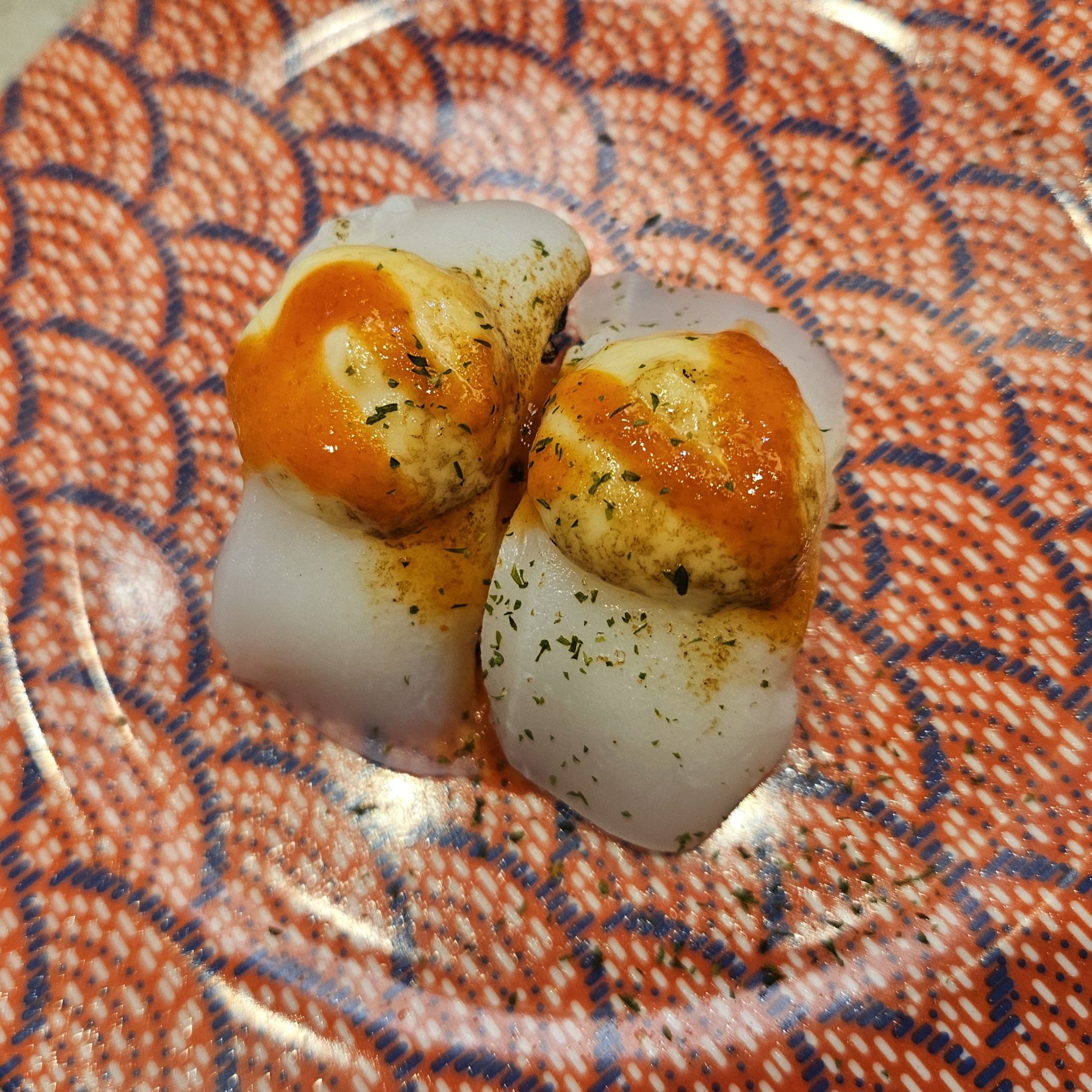 밖에 광고에는 접시당 최소 금액이 1,300원이라고 해서 방문했지만 실제로 눈이 가는 건 2,000원짜리 접시더라고요. 광어초밥으로 입가심을 하고 매콤오징어직화.
