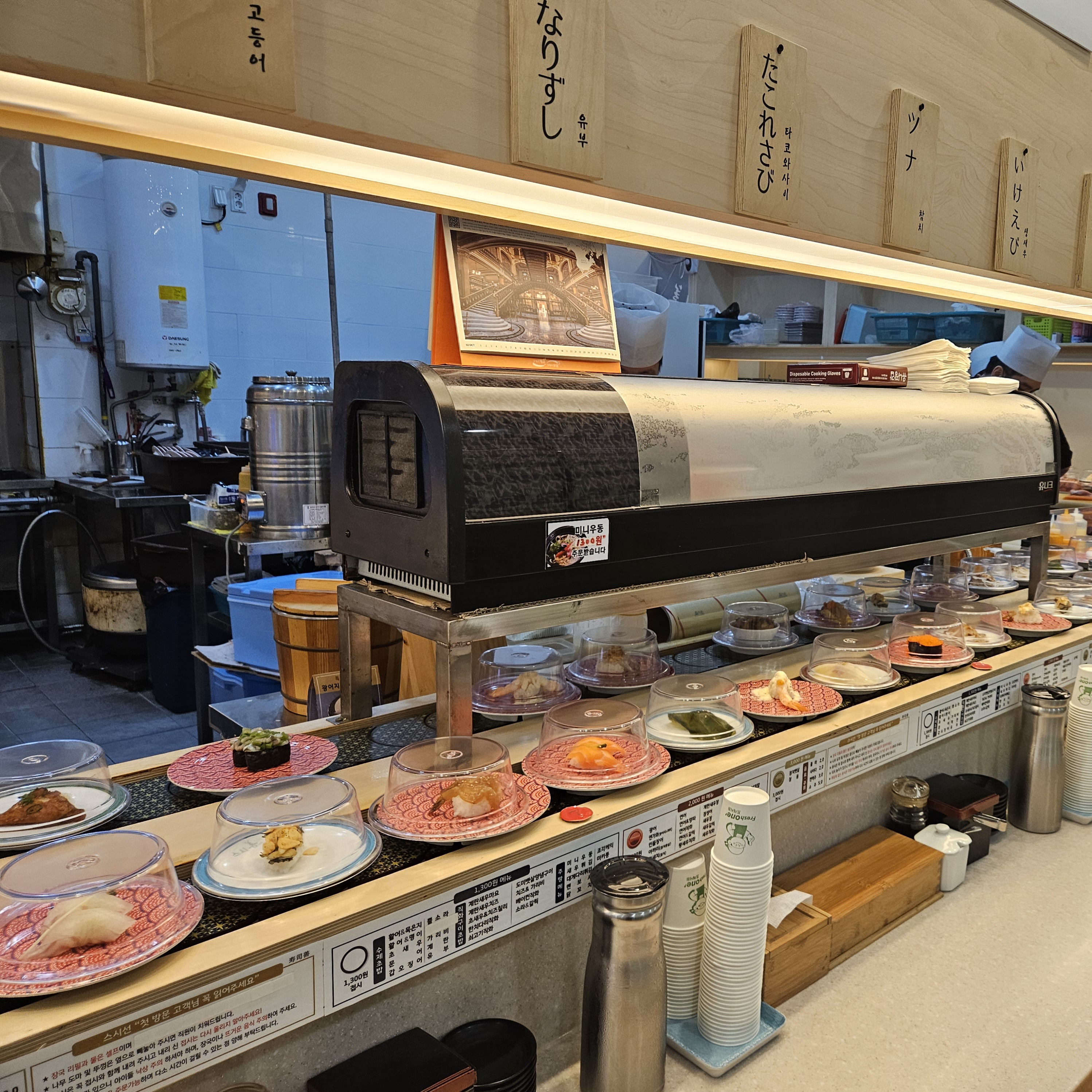 4층에 위치한 회전초밥 스시선 역북점. 평소 점심시간에 맞춰서 가면 손님이 줄 섰던 걸로 기억하고 있는데 점심시간 조금 넘어 방문하니 한산하고 좋더라고요.