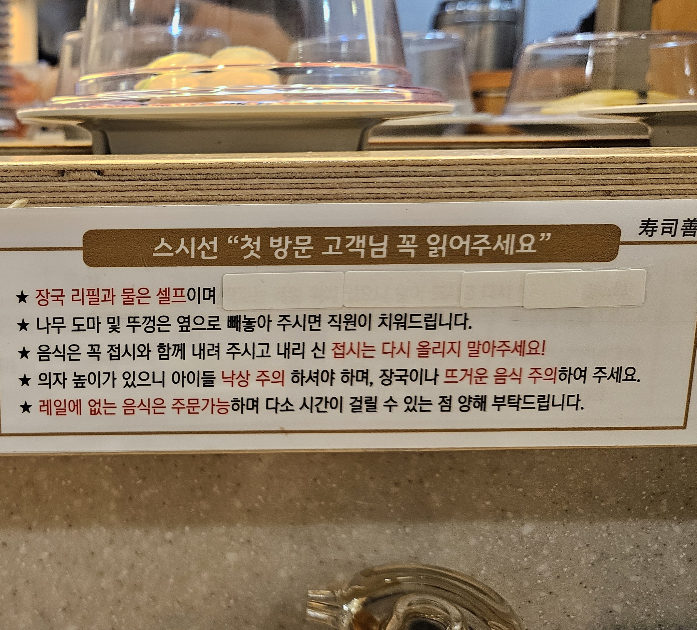 복불복 느낌이었고 맛없는 게 걸리면 약간 돈 아까운 기분이 들었습니다. 그리고 너무 기대하고 가서였을까요? 초밥 종류가 다양한 편도 아니어서 기대이하였답니다. 개인적으로는 돈을 좀 더 지불하더라도 일반 초밥집을 가는 게 나을 것 같았는 생각이 들었고 정말 다양한 초밥을 배불리 먹고 싶다면 차라리 초밥뷔페를 가는 게 좋겠다는 생각도 들었습니다.