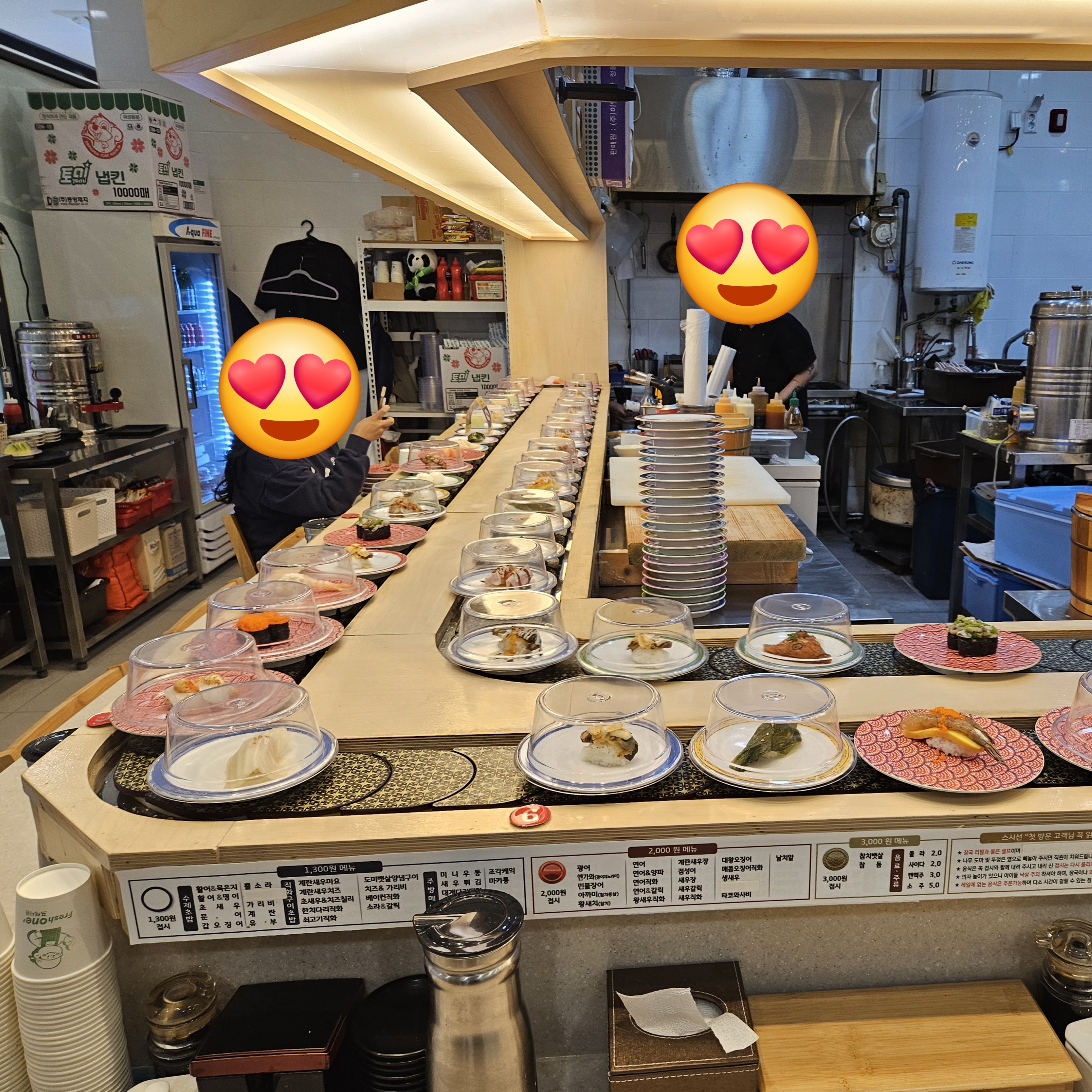 초밥집은 몇 번 방문한 적 있는데 회전초밥집은 방문한 기억이 있는지 긴가민가하더라고요. 접시 위에 초밥이 마구 돌아다니는데 어찌나 귀엽던지 빨리 먹고 싶어 졌는데요.