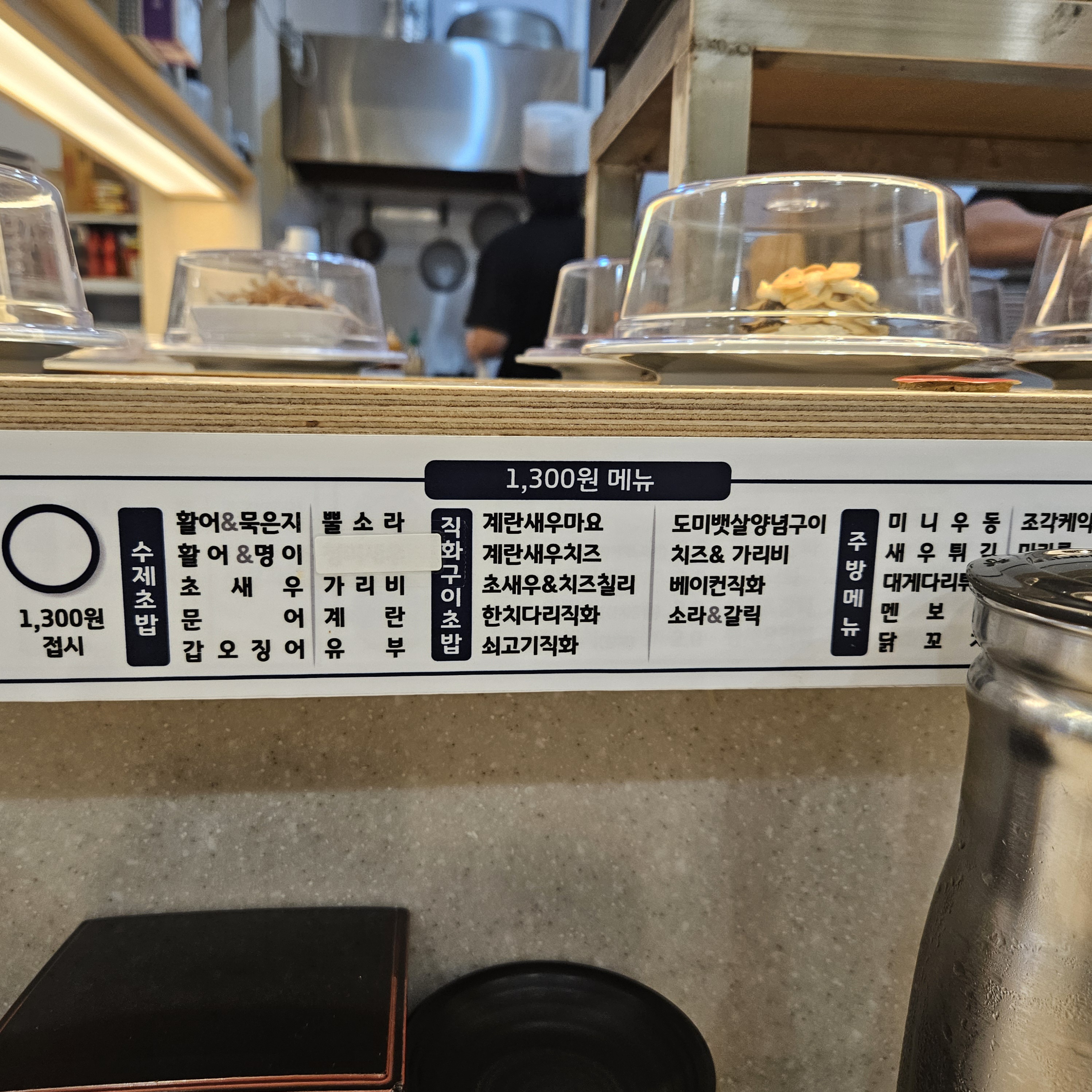 먹어본 1,300원 접시는 개인적으로 활어묵은지초밥이 제일 맛있었답니다.