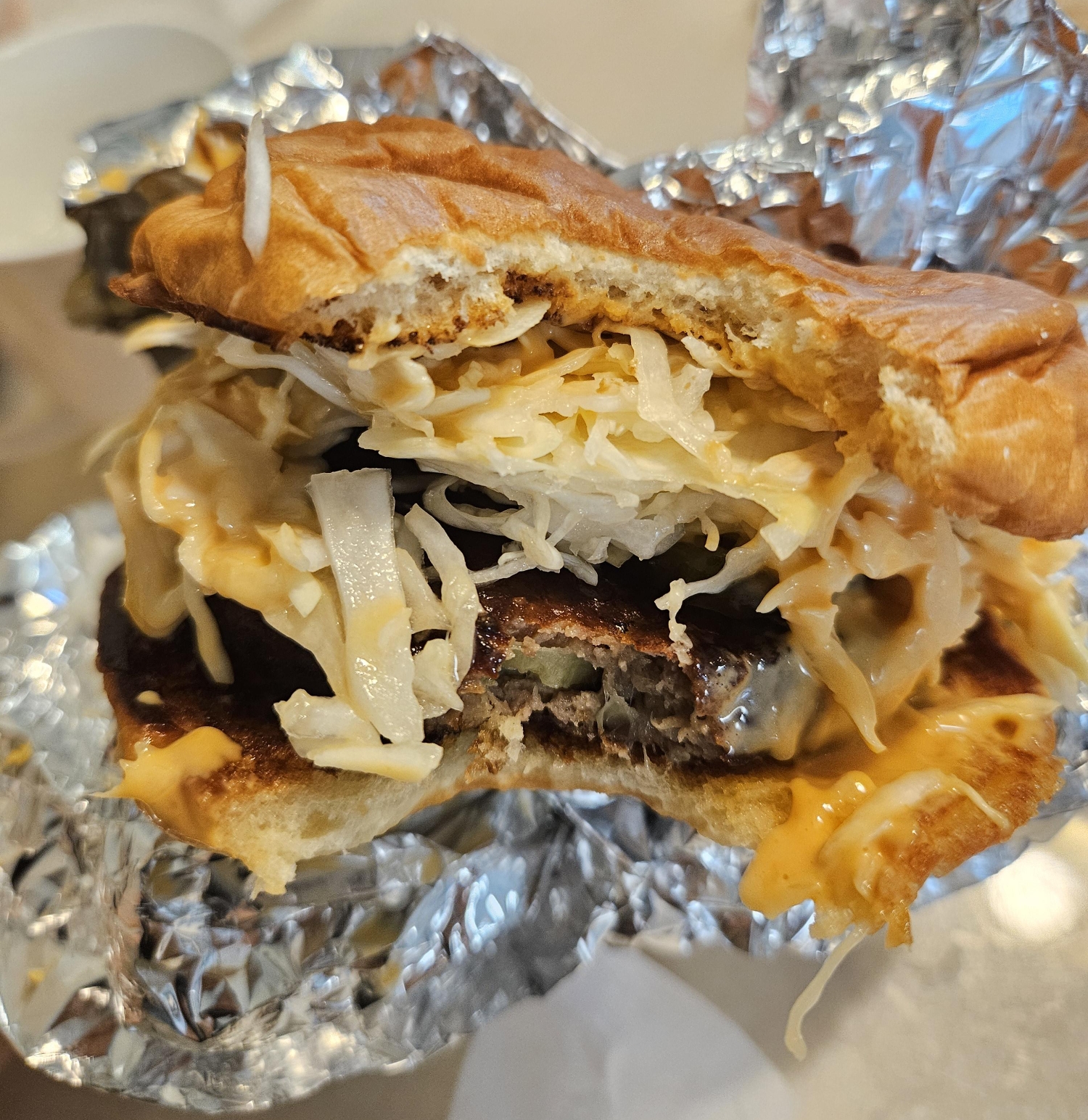 일단 한입 베어 먹어보니 양배추 아삭한 식감 및 고기패티가 두툼해서 맛있더라고요. 소스 또한 케첩+마요네즈만 들어간 게 아닌 뭔가 다른 게 첨가된 느낌이었고 수제고기패티라서 그런지 육즙이 좔좔 너무 맛있었습니다.