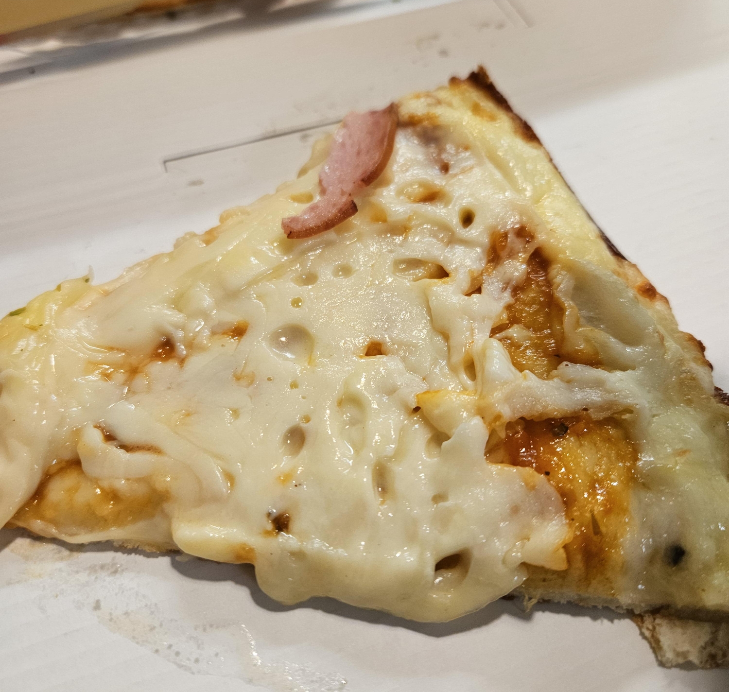 ▼본격적으로 피자를 먹어보기 시작했는데요. 우선 토핑자체는 별거 없는 것 같더라고요. 그냥 피자 위에 대왕햄 및 소스가 전부인 느낌. 혹시 몰라서 햄을 들어봤더니 역시 치즈 및 소스 말고 아무것도 없어 뭔가 부실한 느낌을 받았습니다.