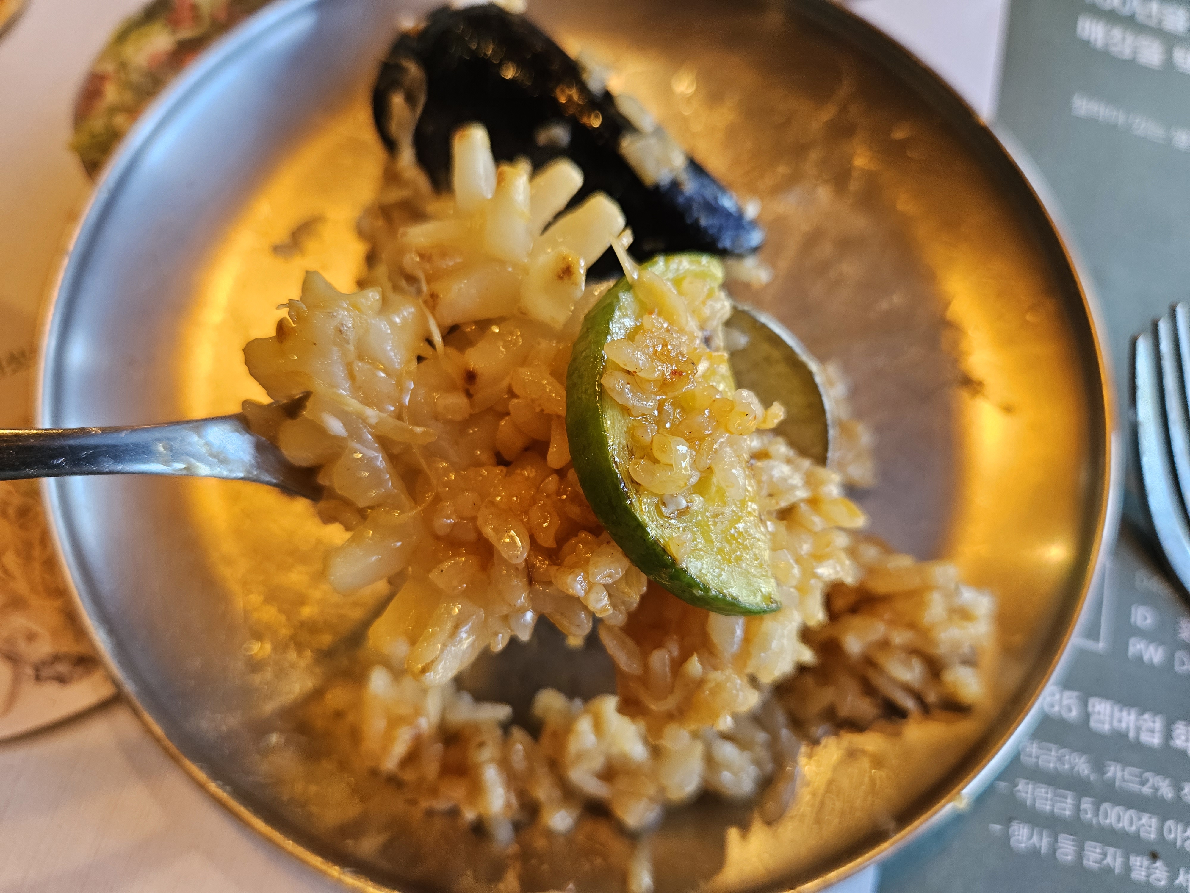 세 번째로 핫해산물필라프라는 메뉴는 볶음밥 같은 느낌이었습니다. 핫해산물이라고 해서 매운맛인 줄 알았지만 제 입맛에는 맵진 않았고 아들이 먹기에 조금 매운맛이 느껴지는 정도였습니다. 제 입맛에는 그냥 무난한 볶음밥느낌이더라고요.