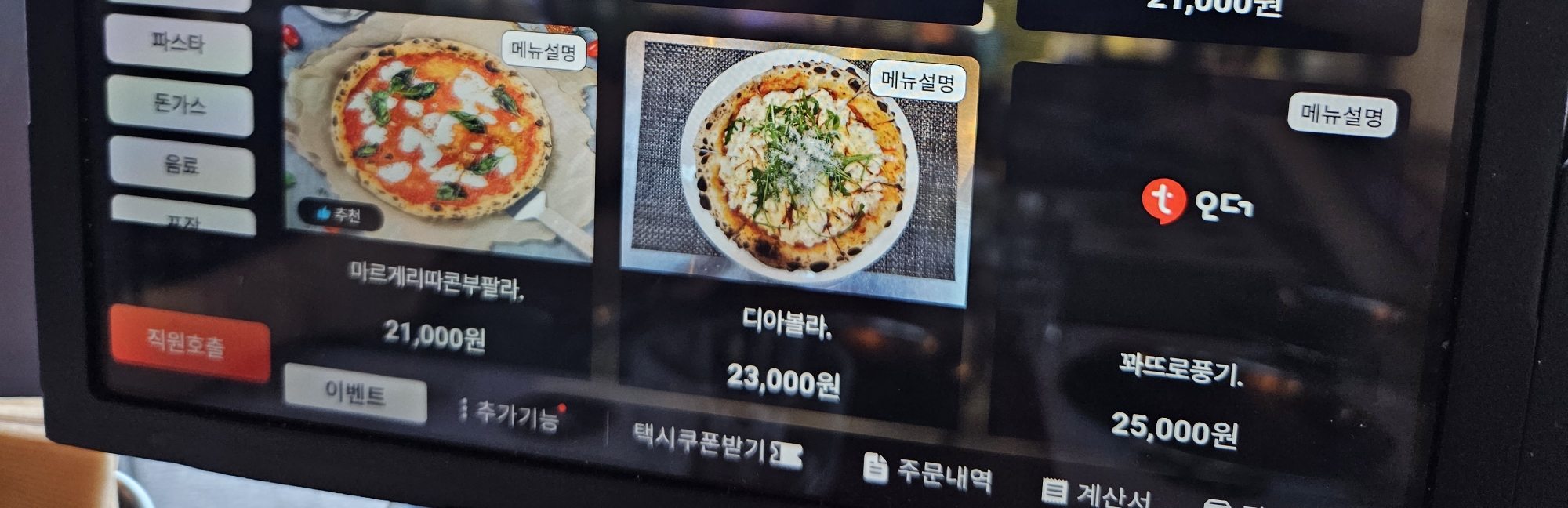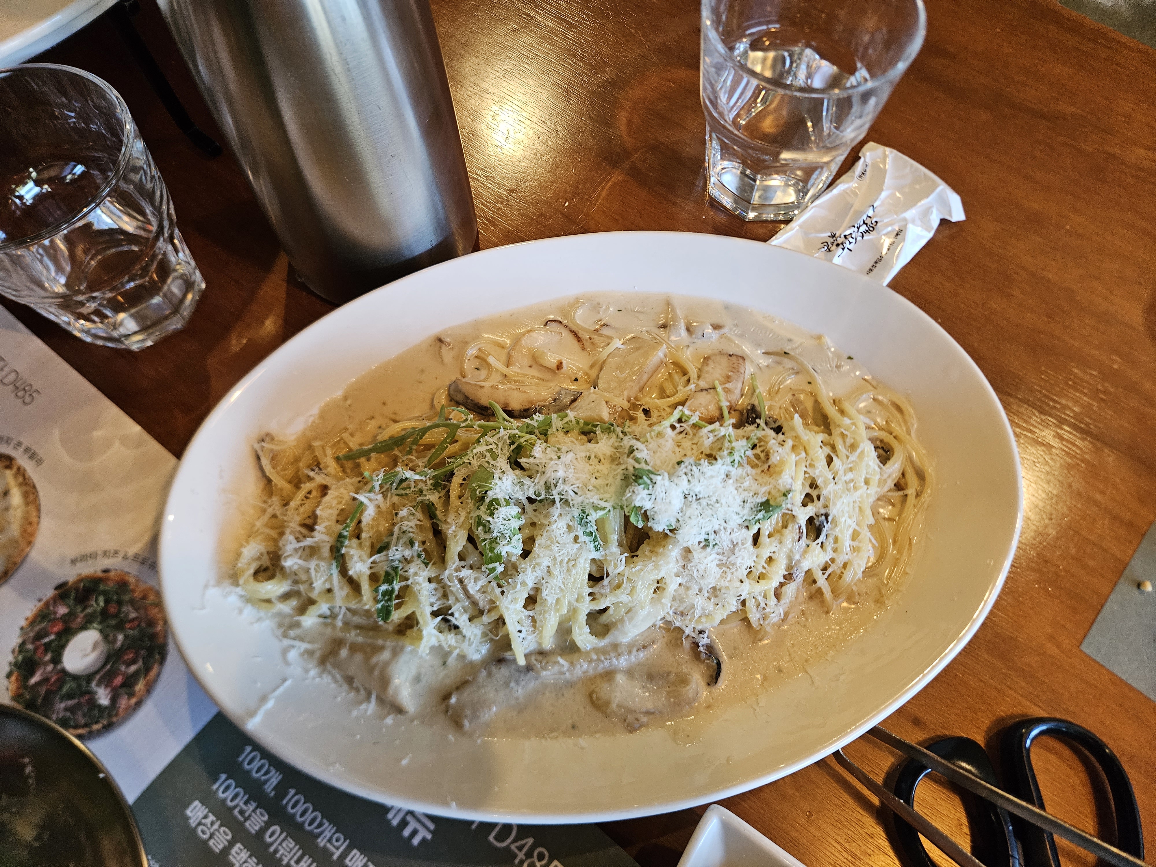 고르곤졸라버섯크림스파게티 총 4가지 메뉴를 시켰습니다.