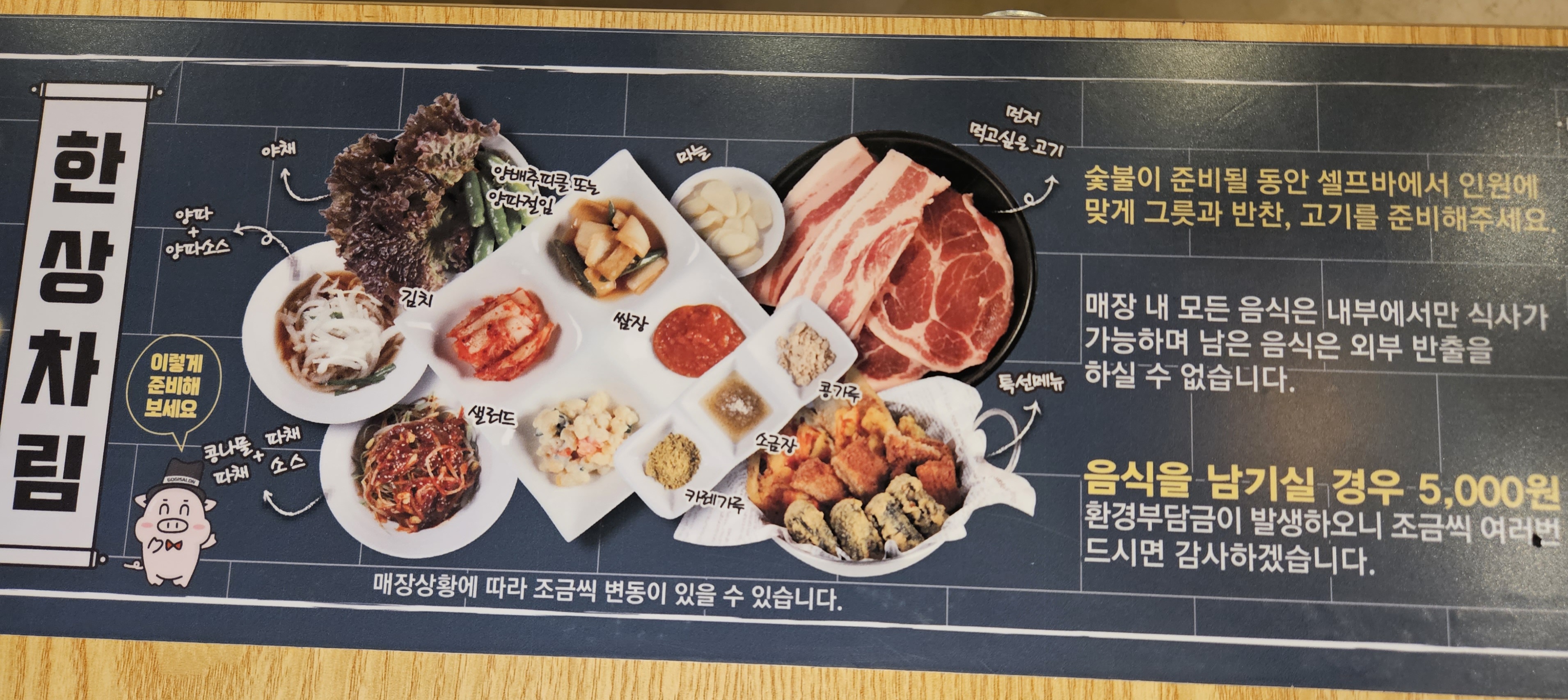 고기싸롱 이용 가격은 평일 오후 3시 이전 입장하면 16,500원이고 주말, 공휴일 그리고 평일 오후 3시 이후 입장 시 17,500원에 이용이 가능합니다. 그리고 36개월 이하면 무료로 이용 가능하고 36개월-7세는 7,000원 8세-10세는 10,000원에 이용가능했는데요. 마지막으로 이용시간은 2시간으로 정해져 있었습니다. 가격은 변동될 수 있으니 이점도 참고만 하시면 좋을 것 같네요.