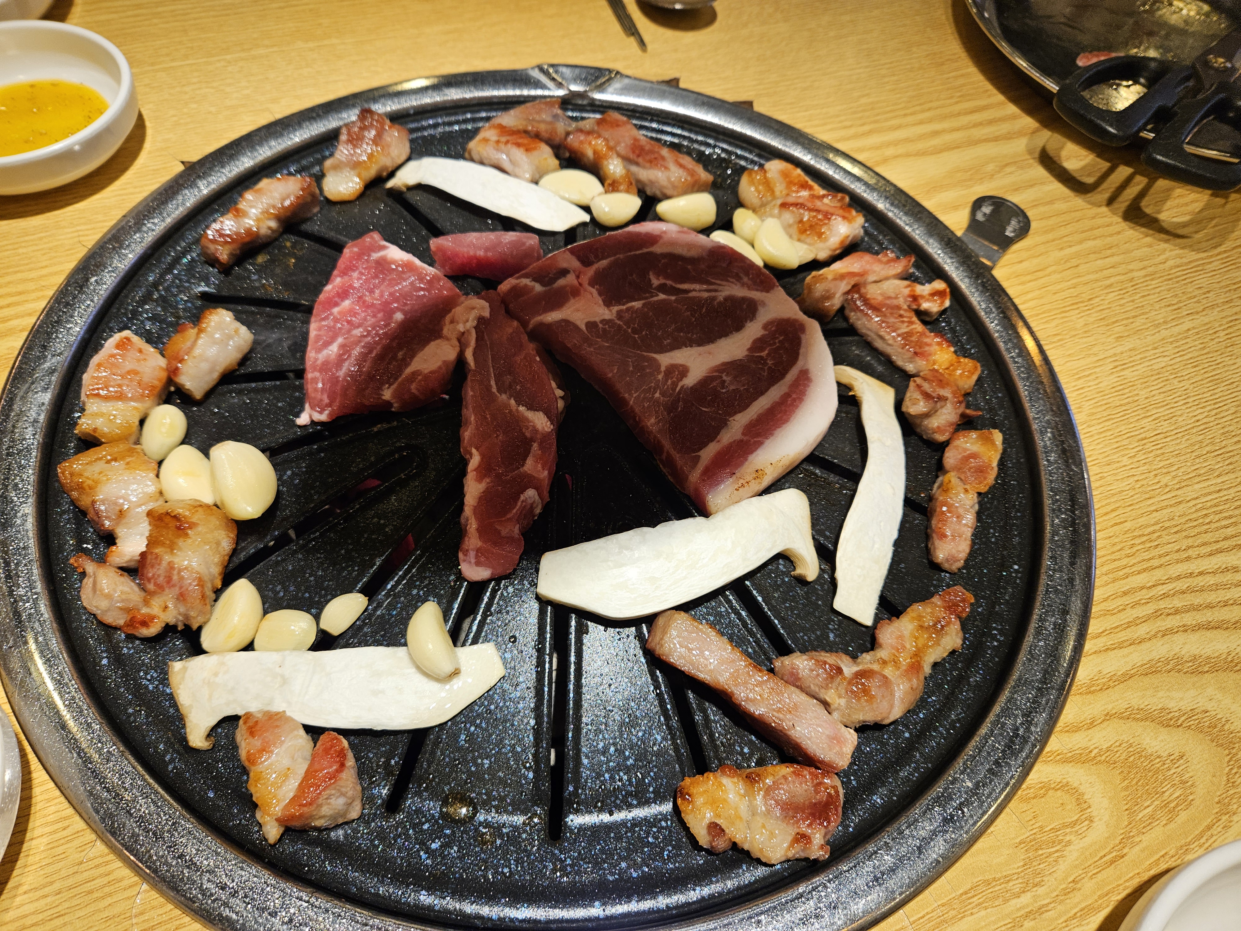 자 이제 본격적으로 불판을 충분히 데운 뒤 주먹고기를 올렸는데요.