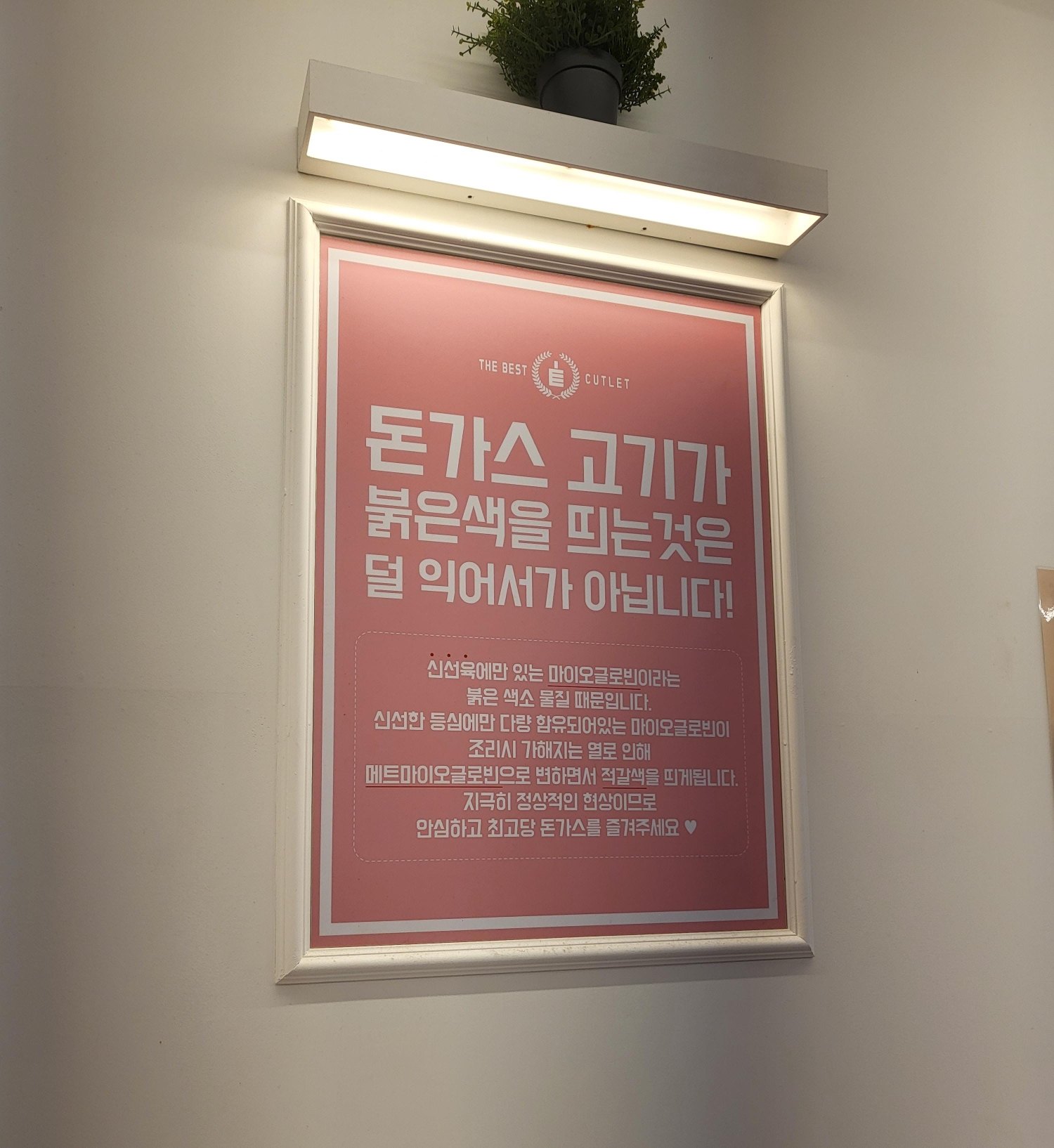 다른 지점 최고당 돈가스 매장을 방문해 본 적은 없지만 매장 안에 들어가니 테이블이 6-7개 정도 있었고 매장 느낌은 테이블이며 벽에 걸려있는 포스터며 뭔가 핑크핑크하고  밝아서 여성스럽게 느껴졌고 매장 자체는 깔끔한 느낌이었습니다.