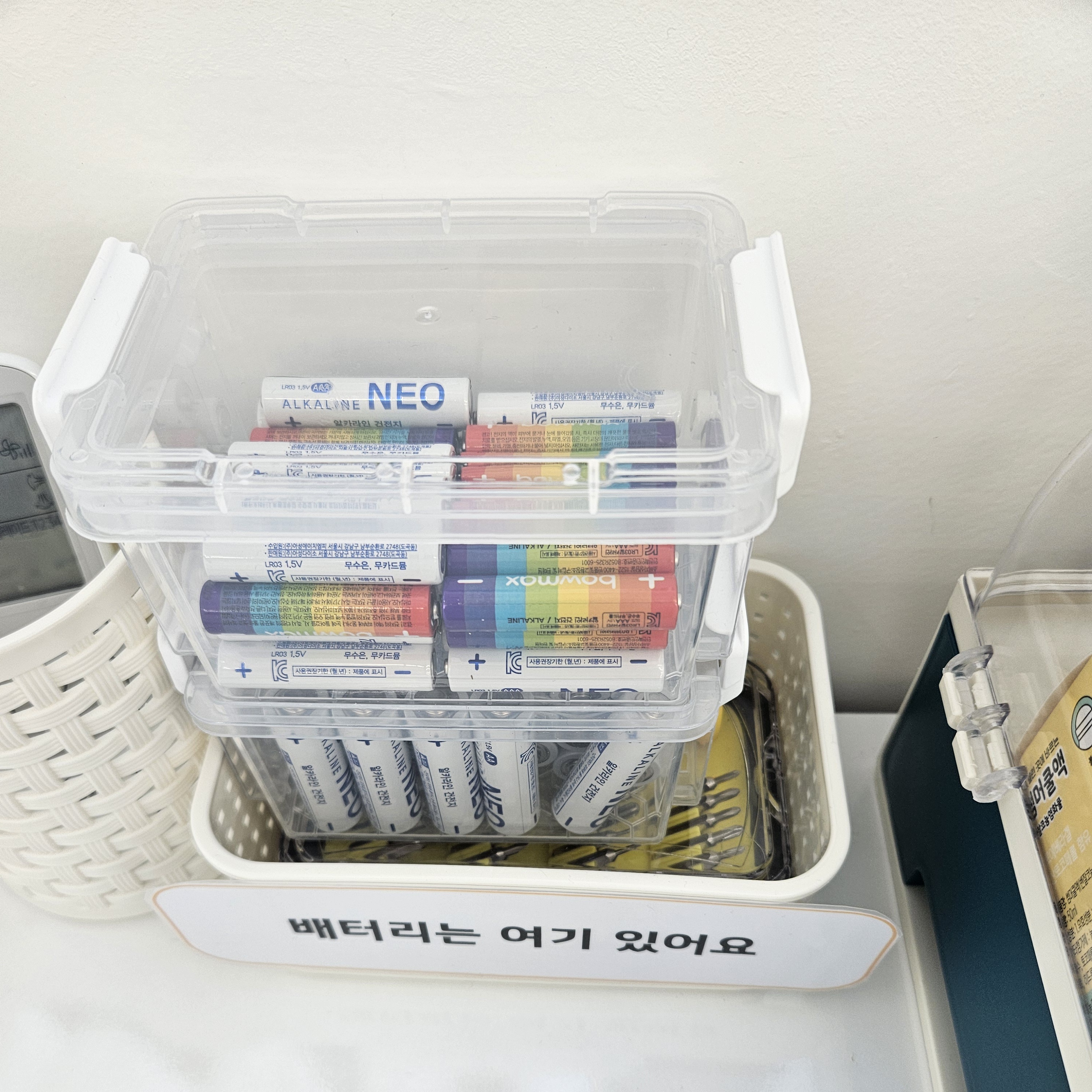 그 외 놀다가 과자부스러기를 흘리거나 청소해야 할 일이 생기면 필요한 청소기도 있고 핸드폰 충전기, 구급함도 있고