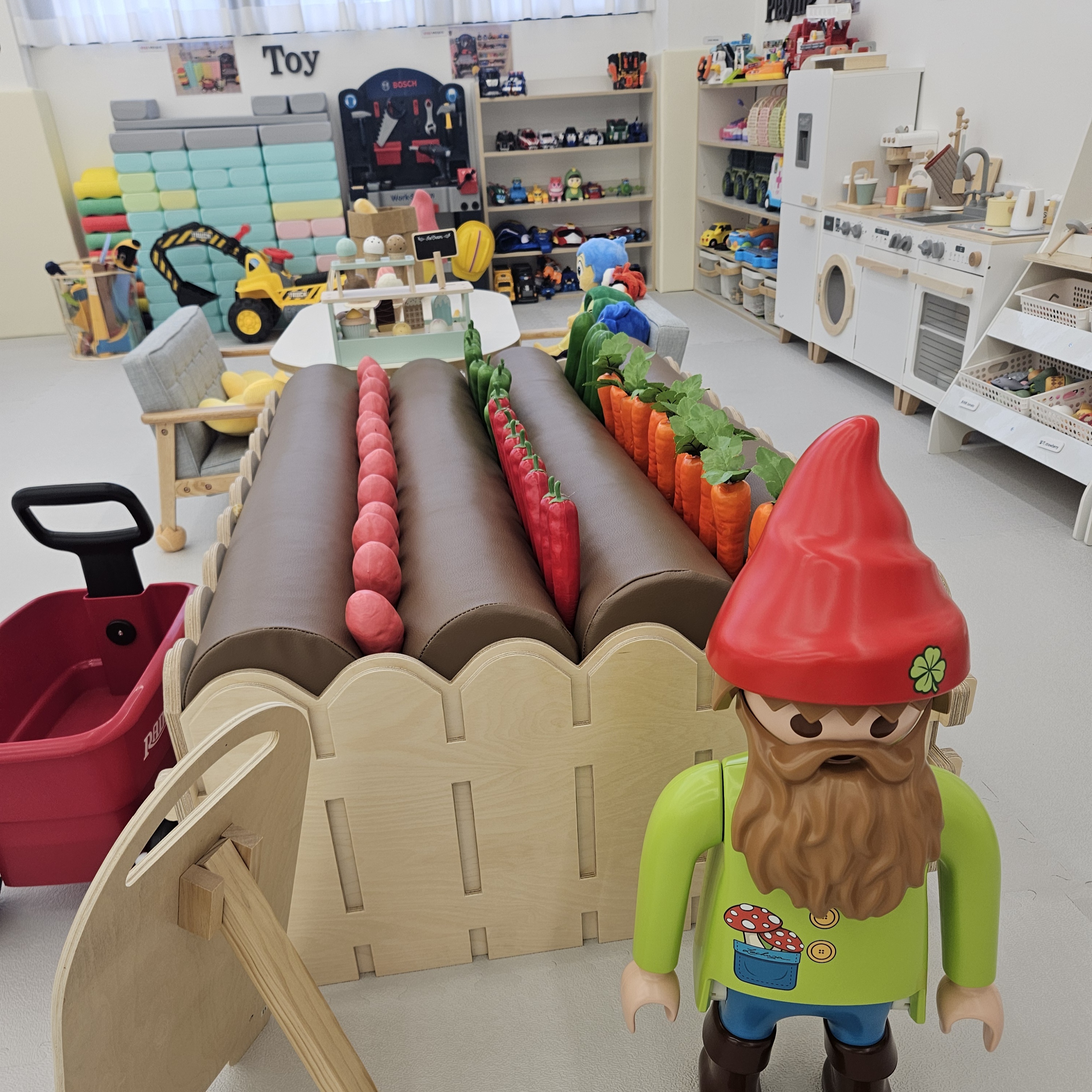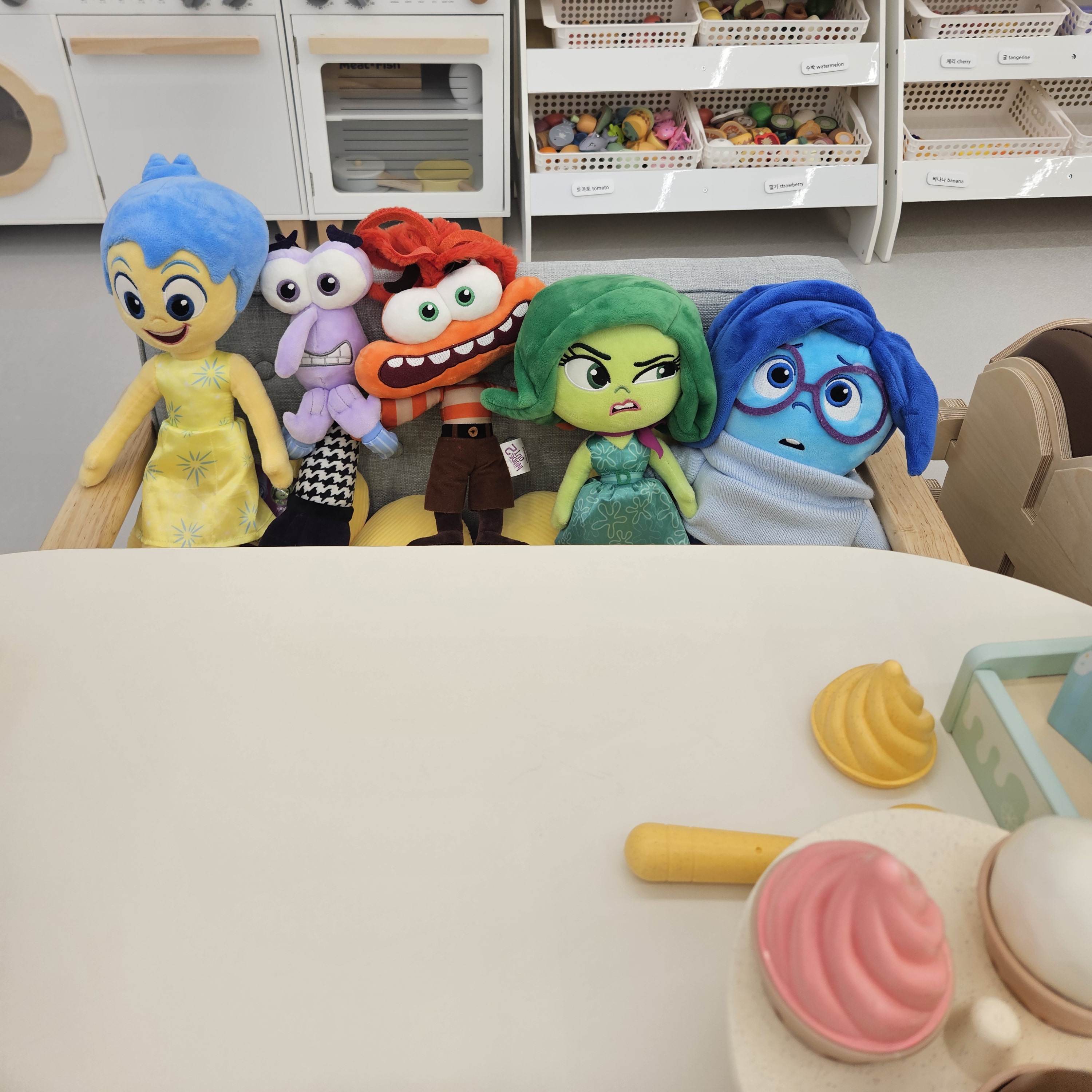 키즈카페이면서 파티룸처럼 사용할 수 있기 때문에 다양한 생일잔치 용품들도 많았고 손 씻기 및 간단한 설거지도 할 수 있게 싱크대까지 있더라고요.