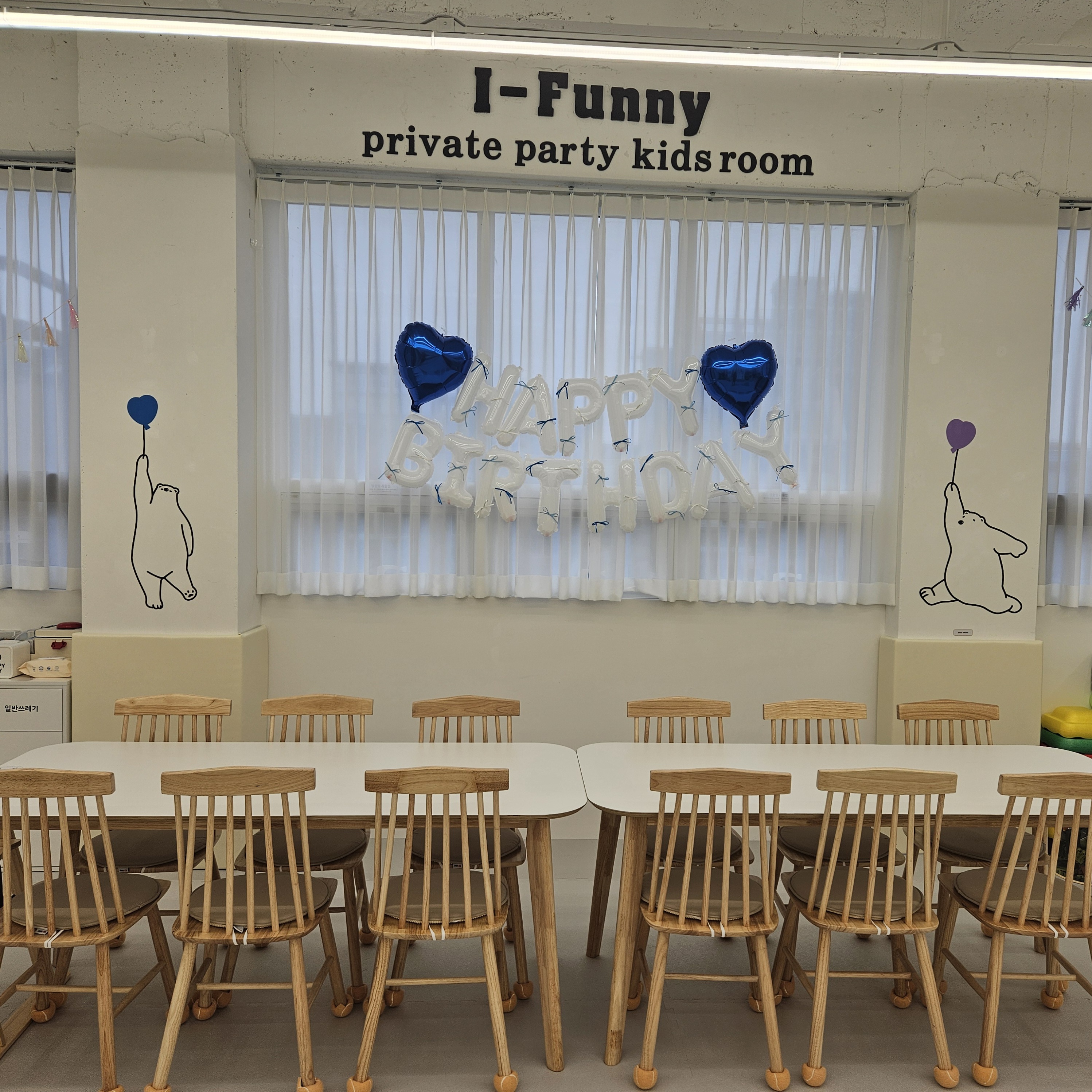 시간제로 대관해서 운영하는 아이퍼니키즈룸. 키즈카페 가운데에는 테이블도 있고 배달 음식, 포장음식은 취식할 수 있어 자녀분 생일파티하기에도 딱 좋겠더라고요.