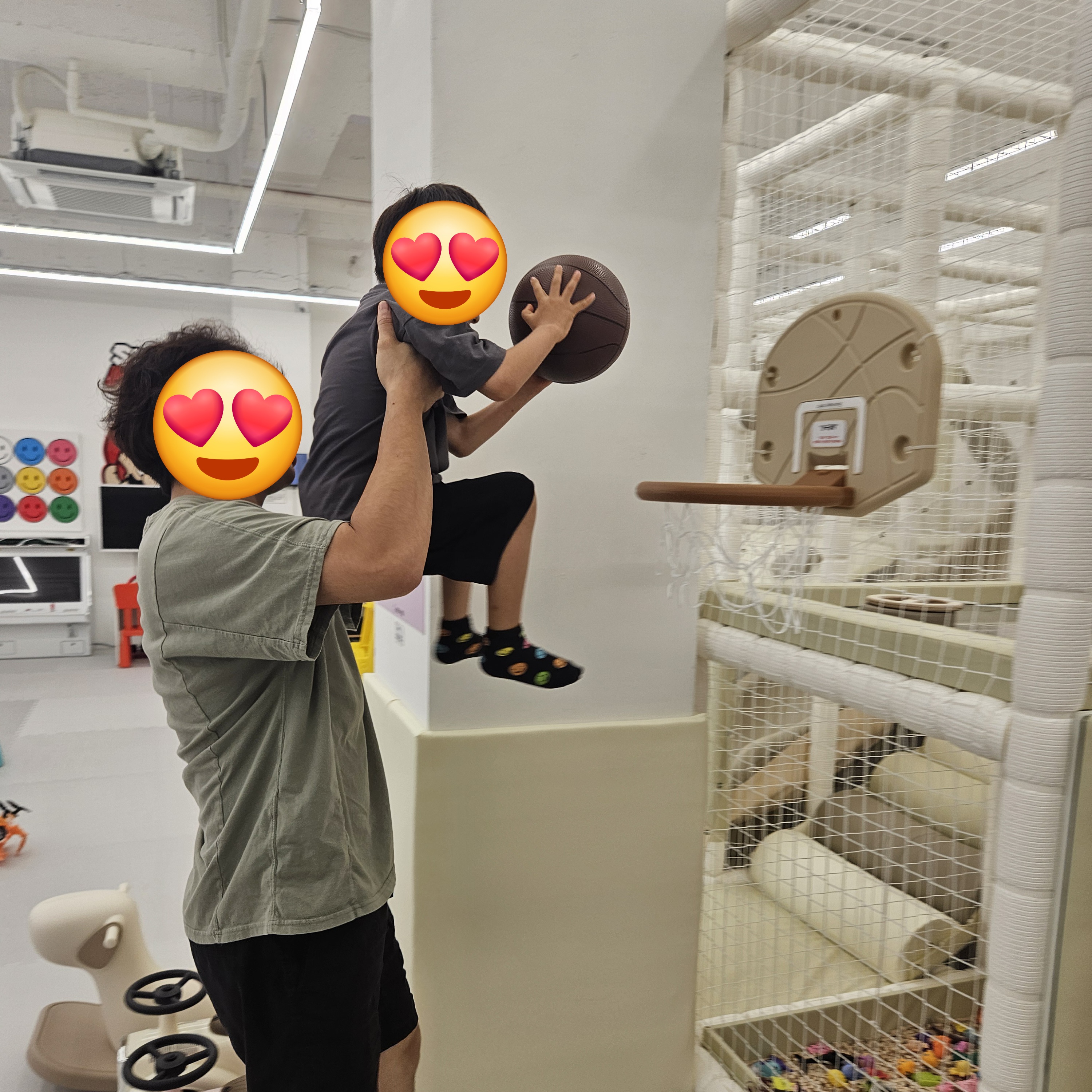 한 시간만 이용했는데 시간이 어찌나 빨리 가던지 너무 재미있게 놀고 왔답니다. 와이프는 나중에 아들 생일날 친구들 불러서 파티해도 되겠다고 하더라고요. 그리고 굳이 파티가 아니더라도 시간제로 운영하고 인원수 제한도 없으니 친한 지인이랑 같이 대관해서 놀아도 되지 않을까 라는 생각을 했답니다.