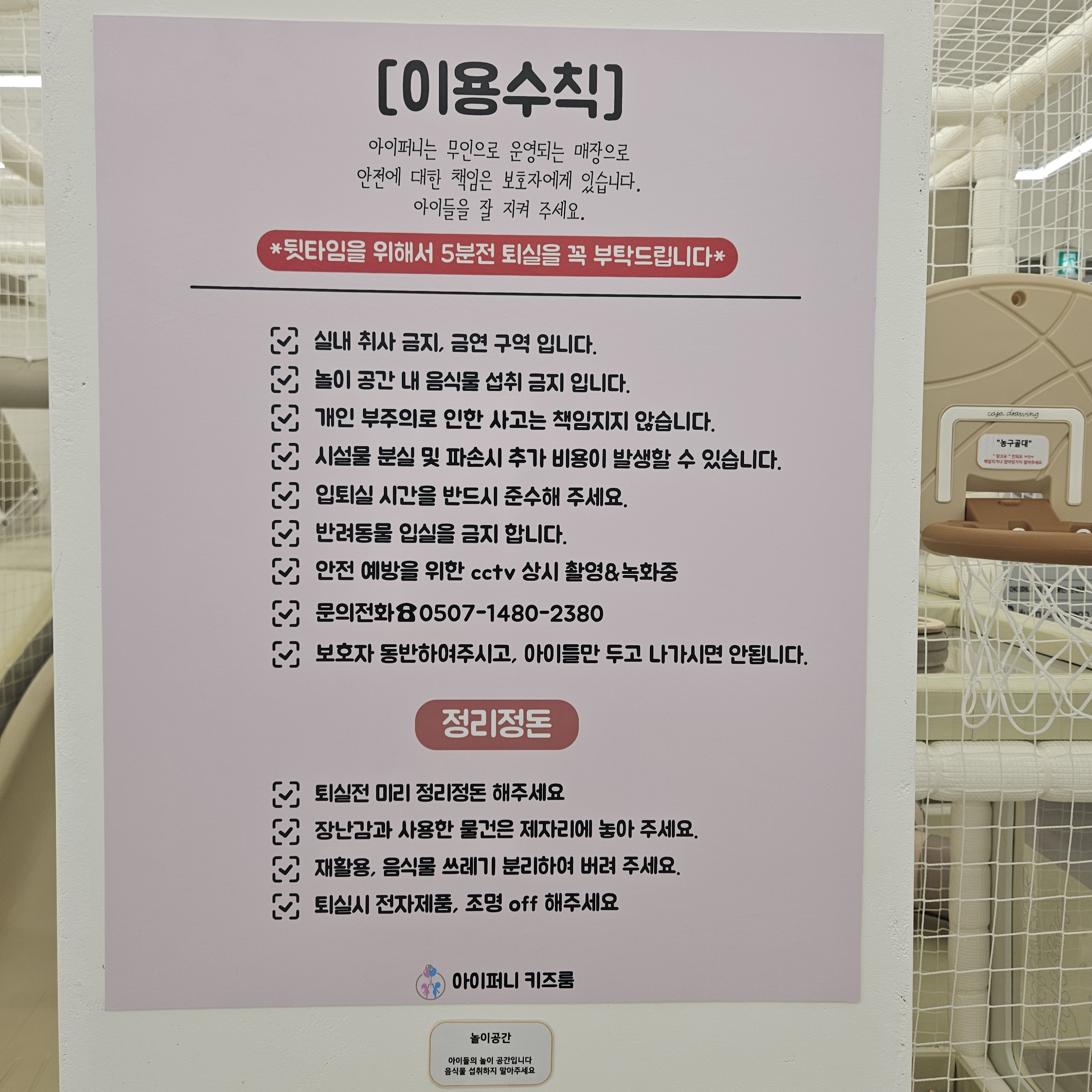 *무인키즈카페인만큼 다 놀고 난 뒤 매너 있게 다음 이용자가 나라는 생각으로 뒷정리는 필수로 해줍시다.