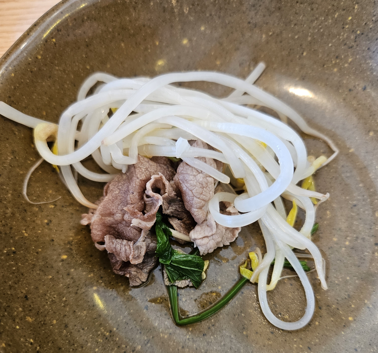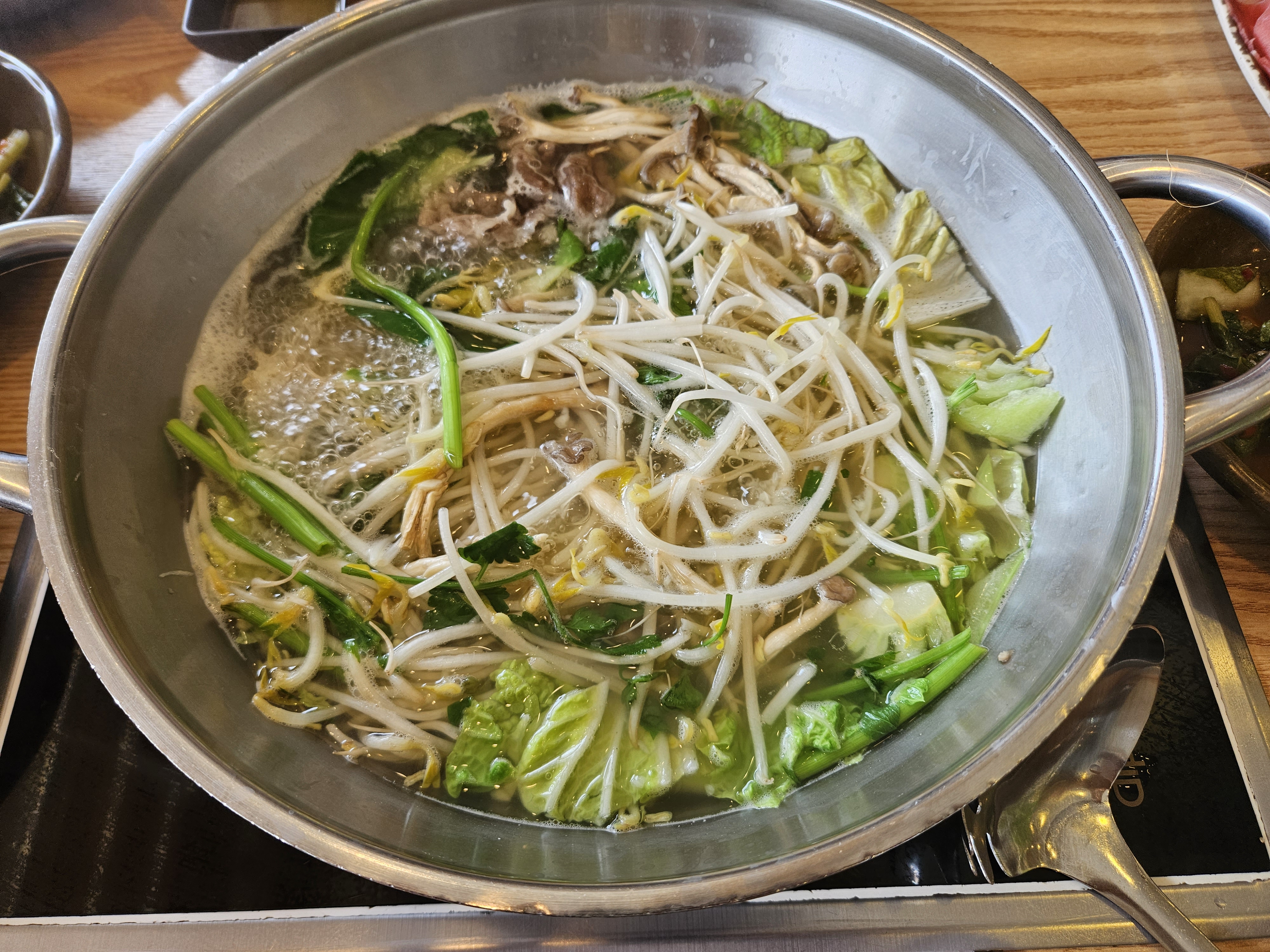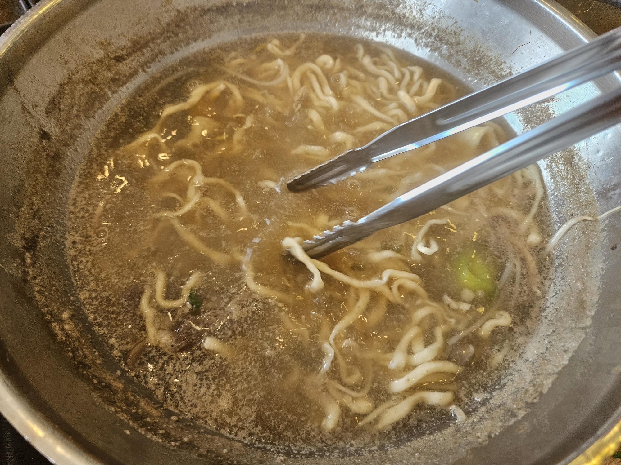 육수가 끓여지길 기다리는 동안 찐만두가 4알이 나왔는데 너무 배고파서 먼저 먹고 사진을 찍었는데요. 안에 속은 부드럽고 만두피는 쫀득한 게 역시 너무 맛있었습니다.