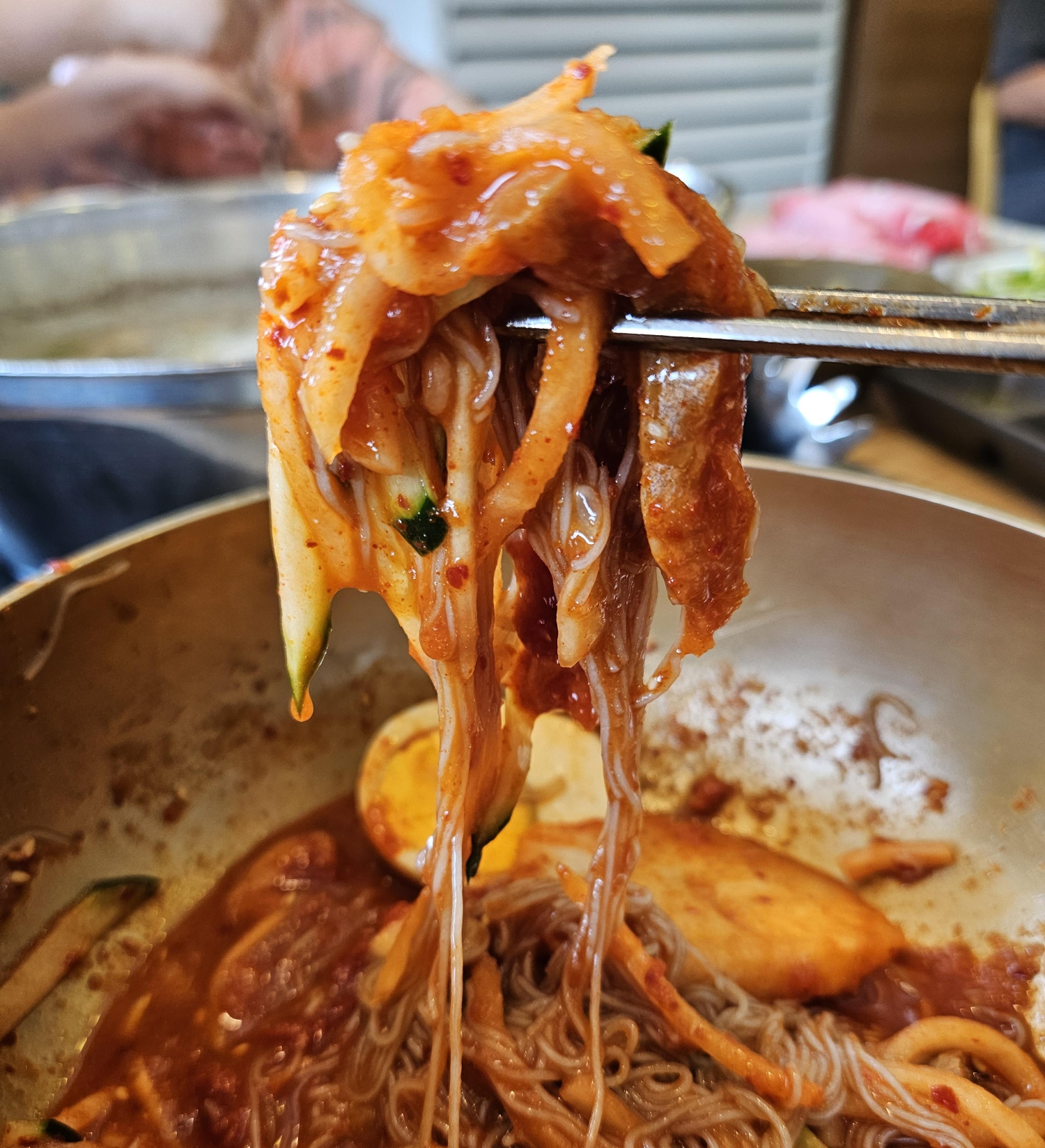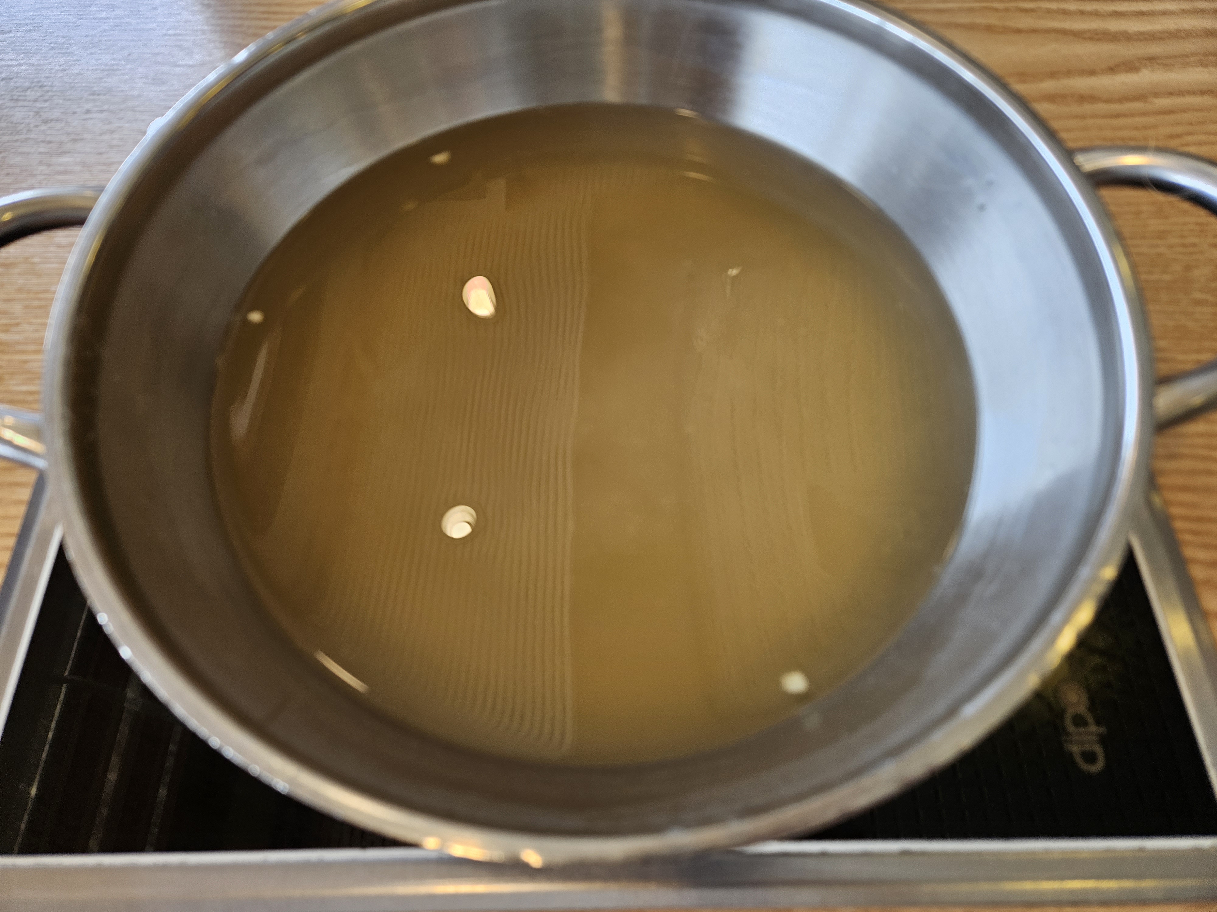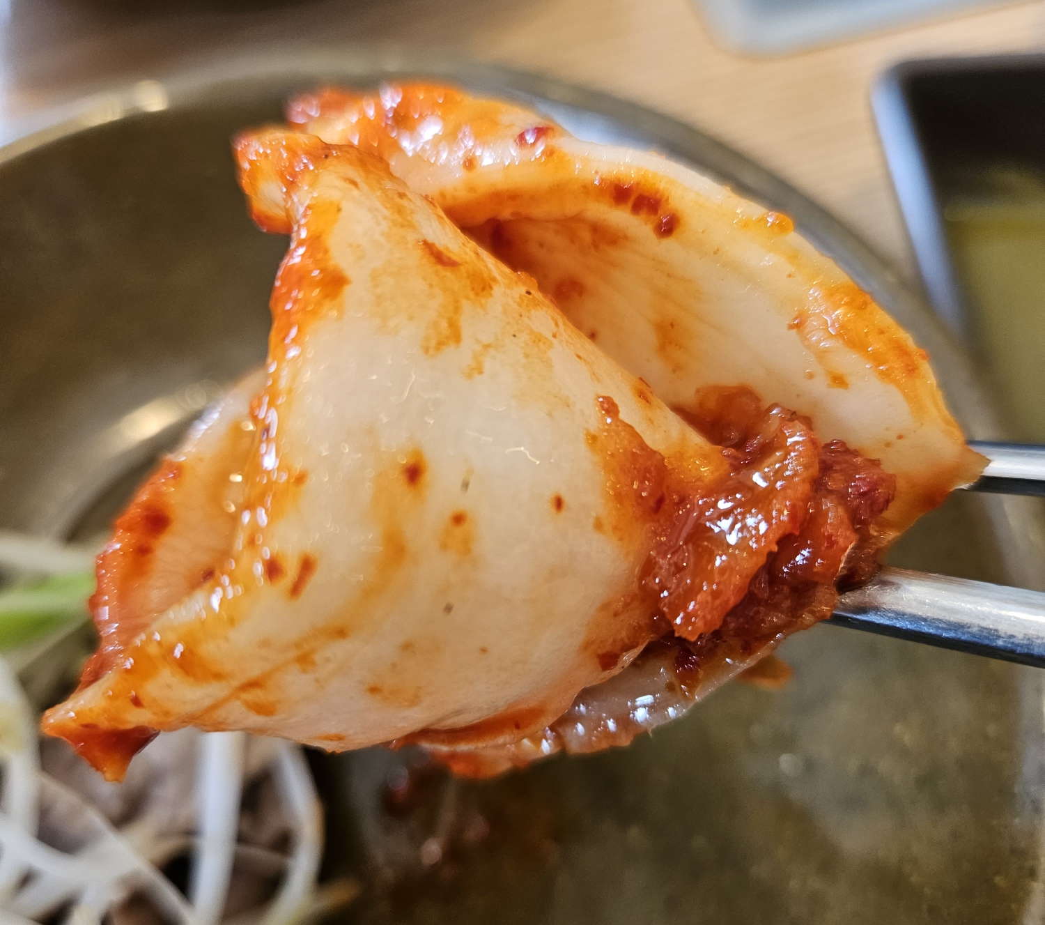 육수가 끓여지길 기다리는 동안 찐만두가 4알이 나왔는데 너무 배고파서 먼저 먹고 사진을 찍었는데요. 안에 속은 부드럽고 만두피는 쫀득한 게 역시 너무 맛있었습니다.