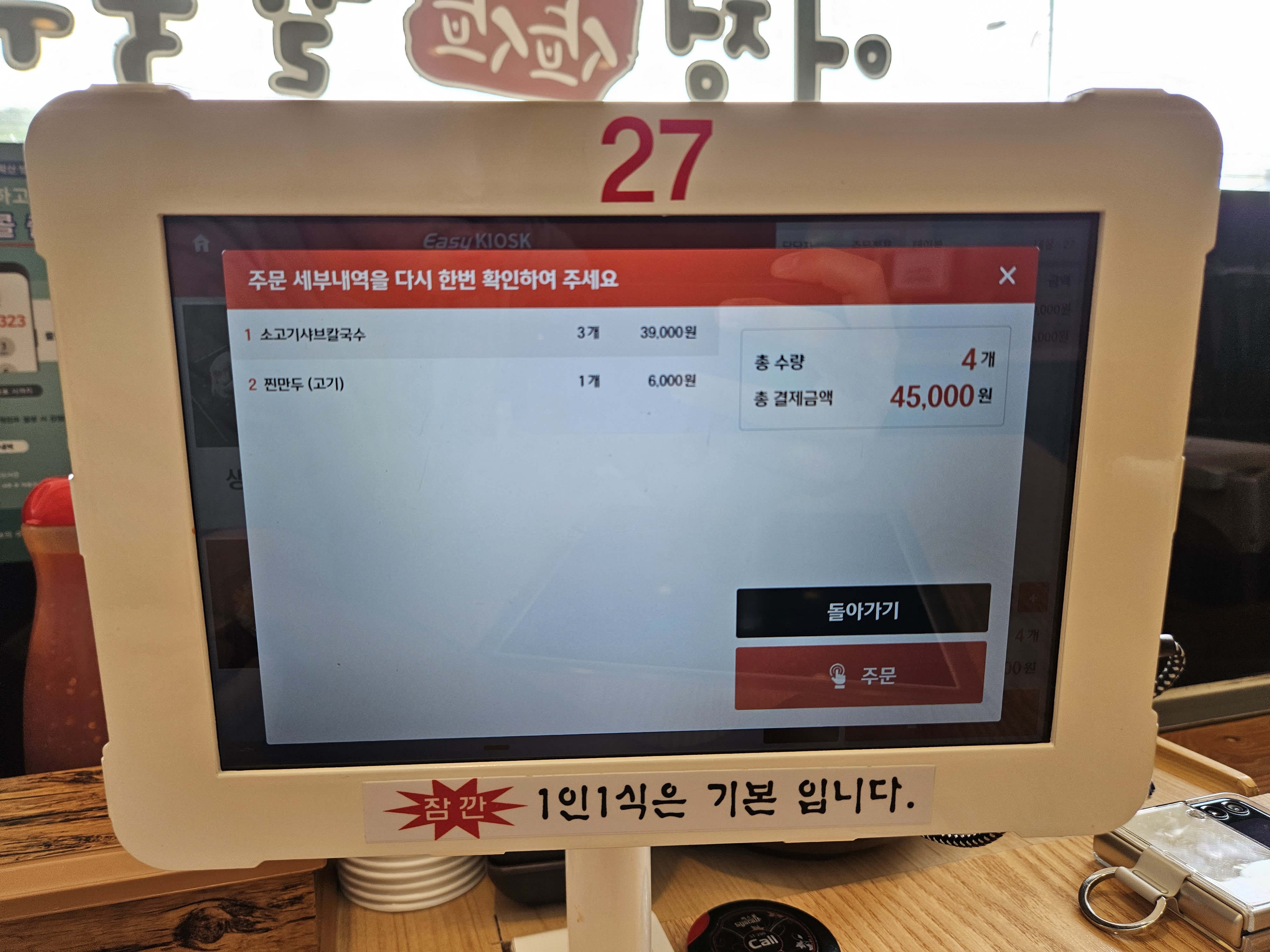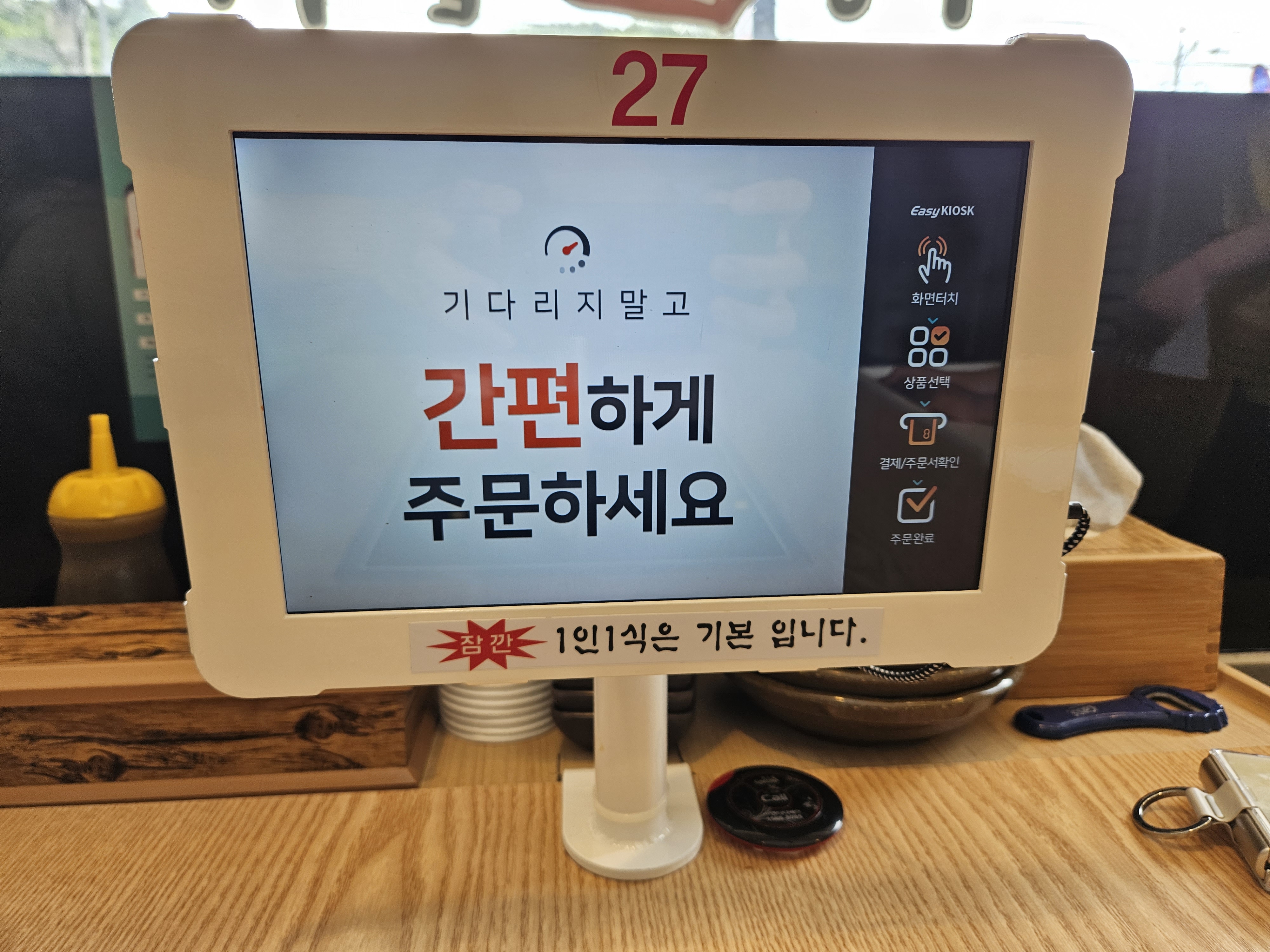 앞서 보신 것처럼 메뉴판이 별도로 있긴 하지만 테이블에 있는 키오스크를 이용해 이미지 사진도 보면서 주문을 할 수 있으니 참고하세요.