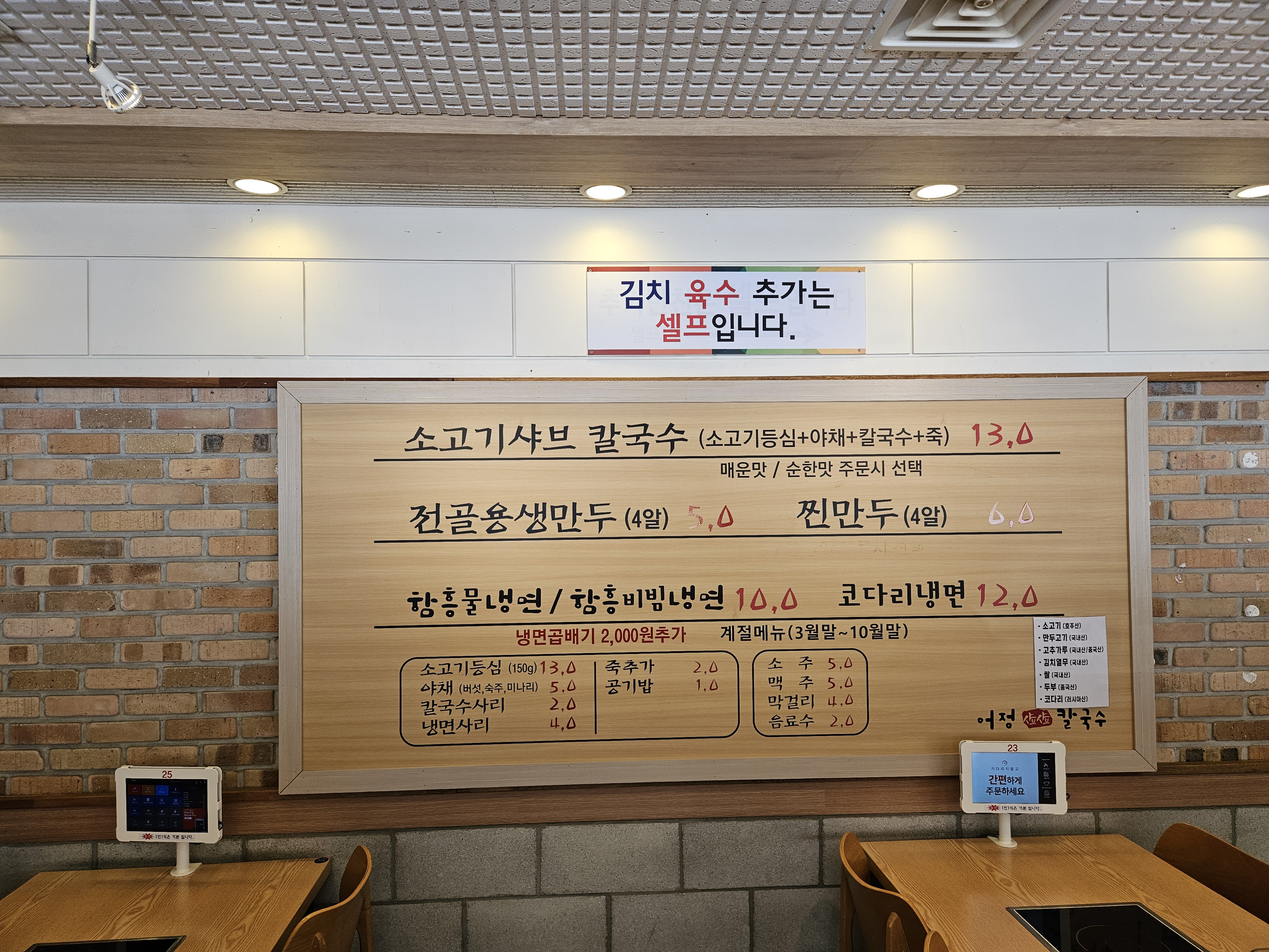 어정샤브샤브칼국수&함흥냉면 메뉴판