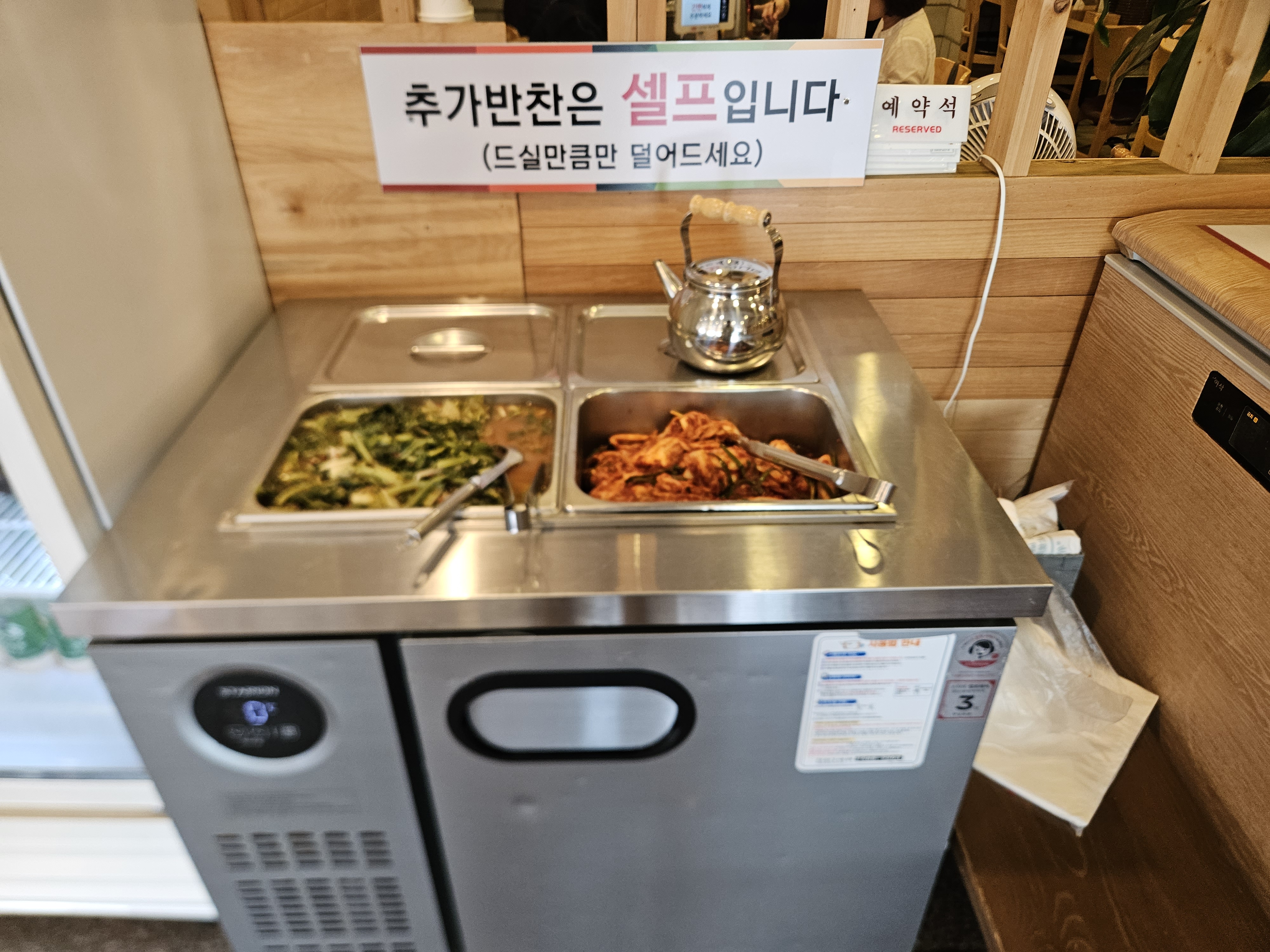 그리고 반찬으로 나온 배추김치와 열무김치 특히 제 입맛에는 배추김치가 엄청 맛있었는데요. 셀프코너에서 추가로 퍼올 수 있었는데 두 번 더 퍼와서 먹었답니다.