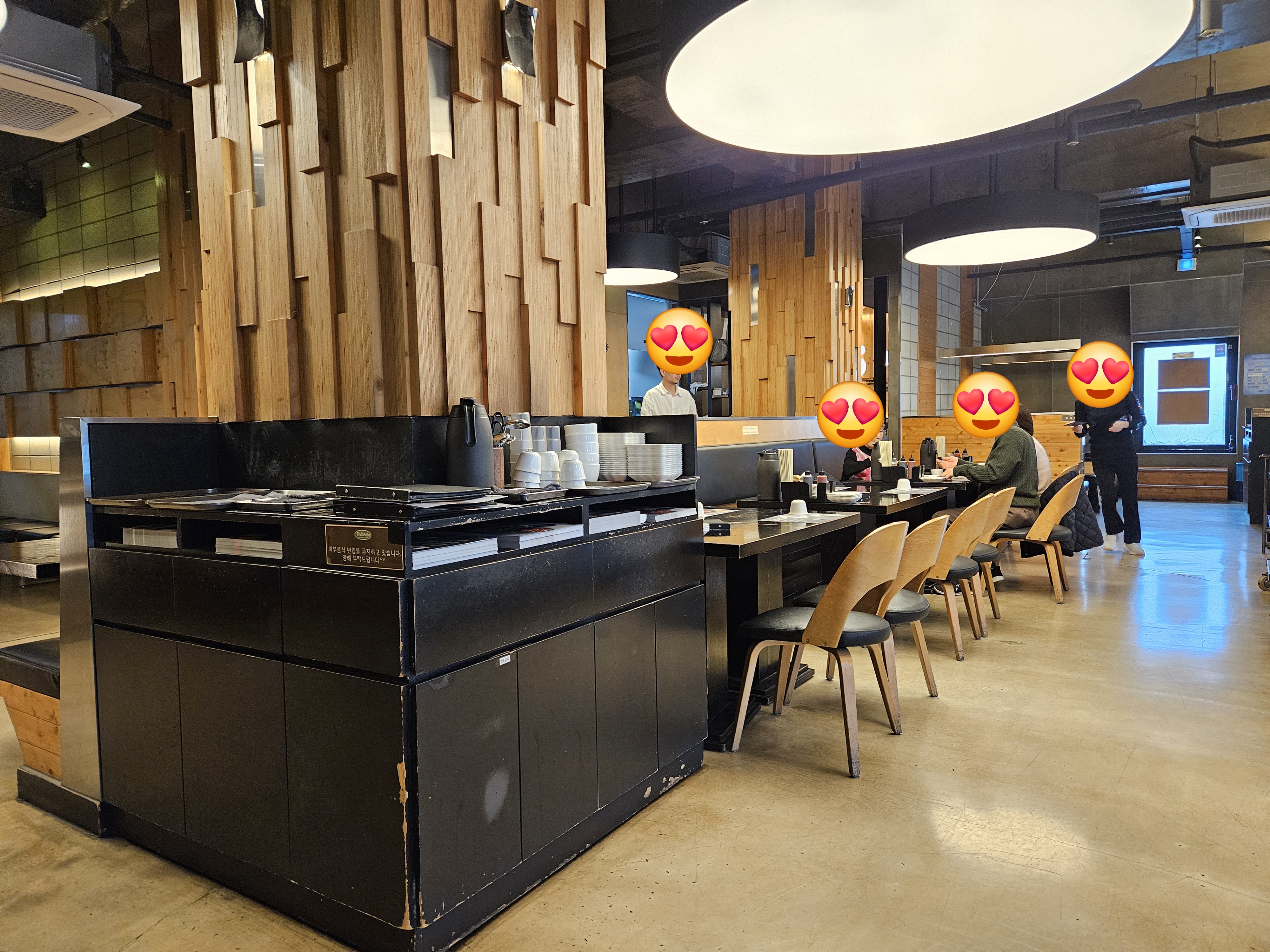 포메인 수지점 내부는 테이블도 많이 배치되어 있고 조명도 은은한 게 국숫집이라고 생각이 안들정도로 너무 깔끔하게 느껴지더라고요. 창가 쪽에도 자리가 있었는데 벌써 손님들이 차지하고 앉아있어 사진은 찍지 못했답니다.