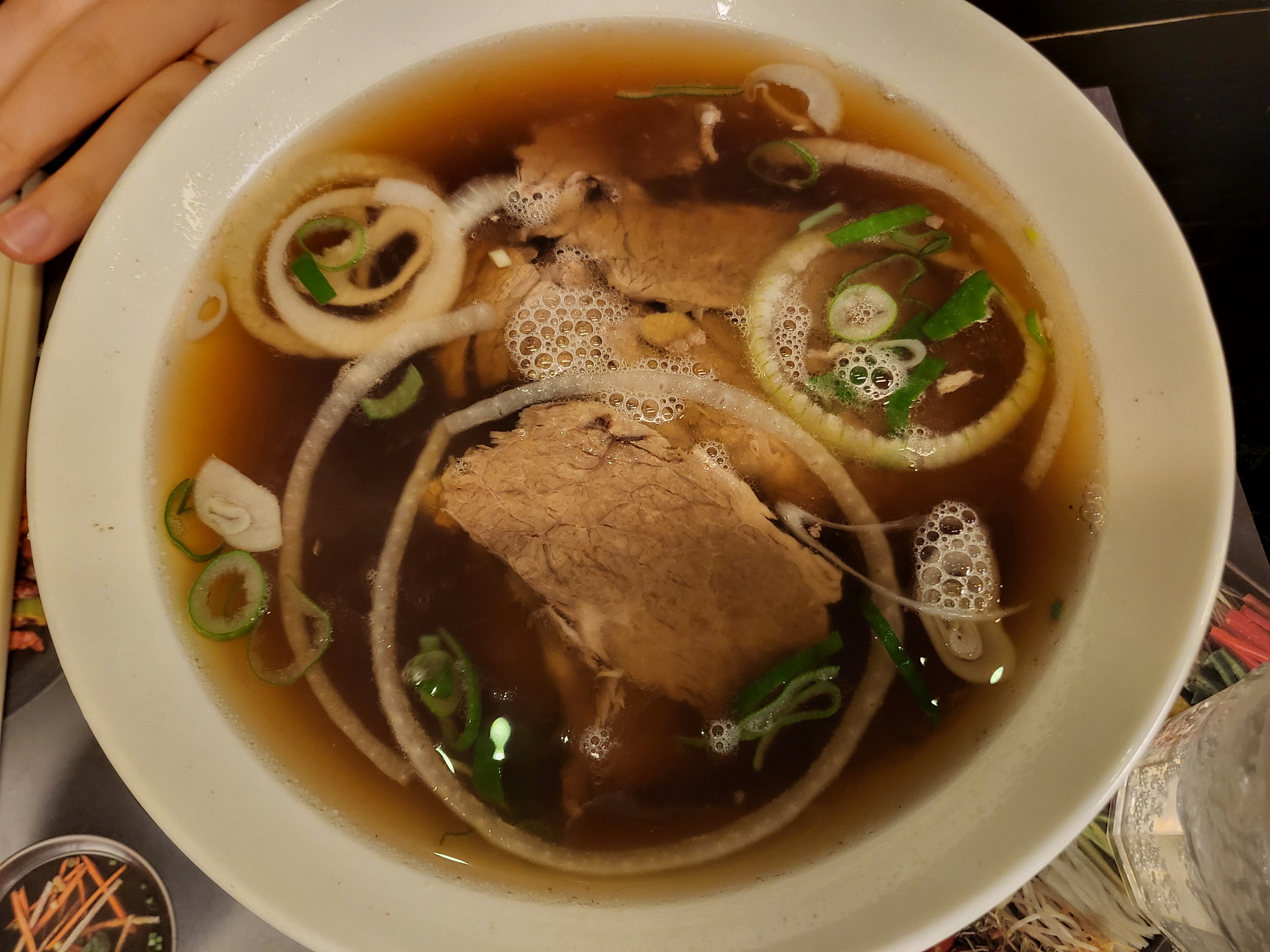 그리고 2인 세트라지만 와이프가 배가 불렀는지 남은 쌀국수를 줬는데요. 우선 와이프가 고기가 많이 들어있다고 하면서 다 먹었던 걸로 기억하는데 또 고기가 들어있더라고요. 무엇보다 국물이 맑고 깔끔한 게 너무 좋았답니다.