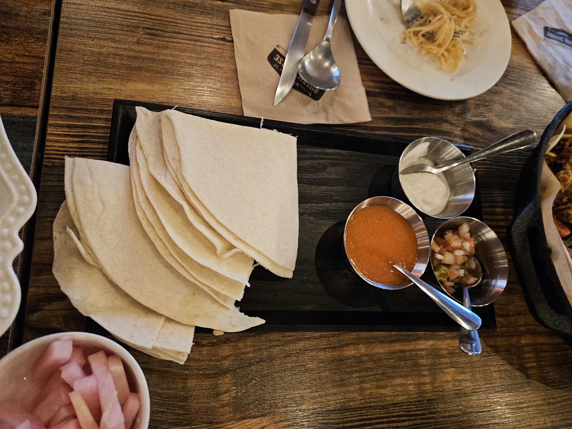 4인 세트 메뉴 중 비프 퀘사디아 혹은 BBQ 퀘사디아 중 하나를 선택할 수 있었는데 저희는 비프 퀘사디아를 선택했답니다.