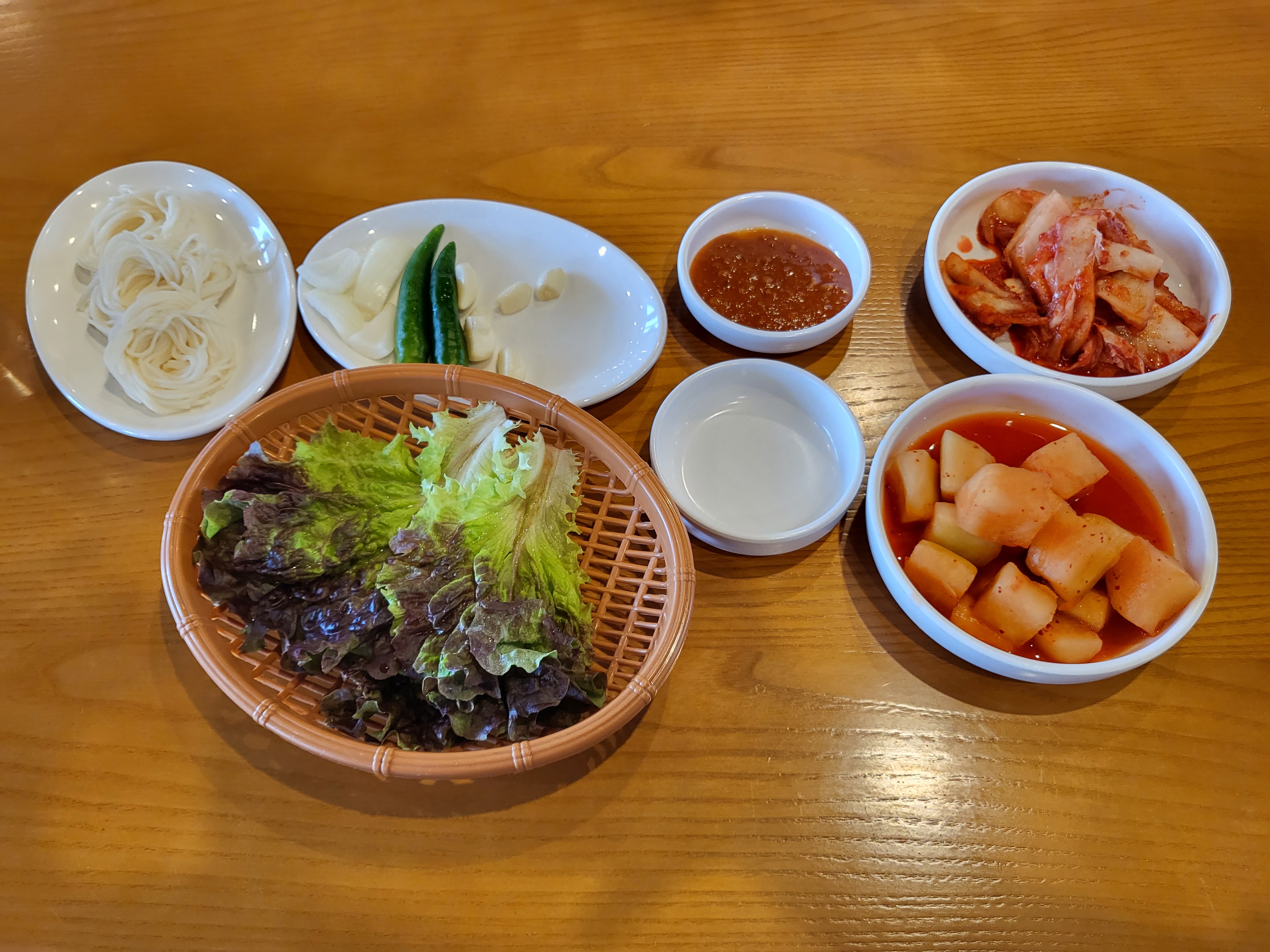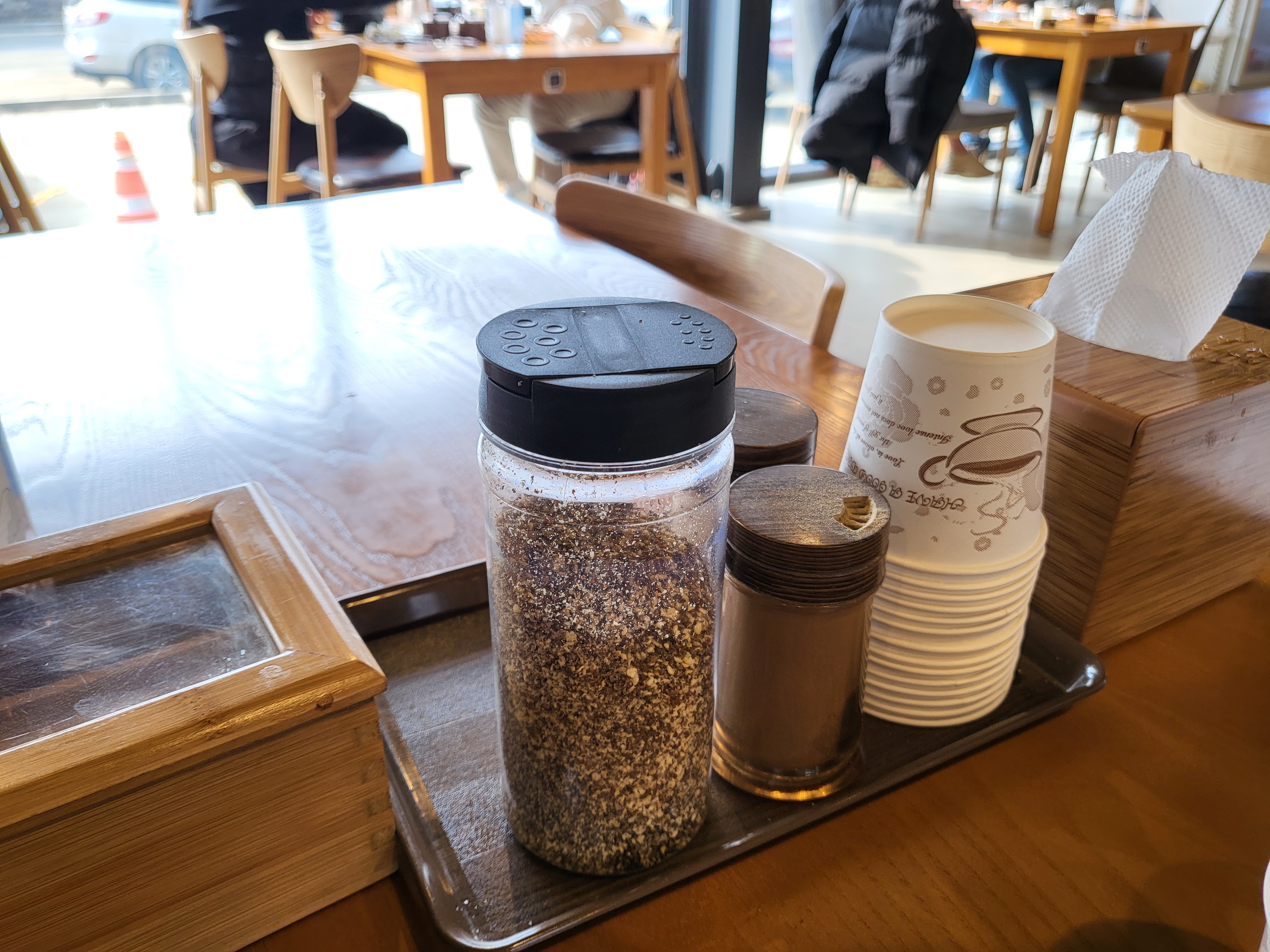 그리고 각 테이블에는 각자 입맛에 알맞게 먹을 수 있도록 국물에 넣어 먹는 재료들이 준비되어 있는데요. 생각보다 다양하게 넣어서 먹는 분들도 계시는구나 라는 생각을 했습니다.