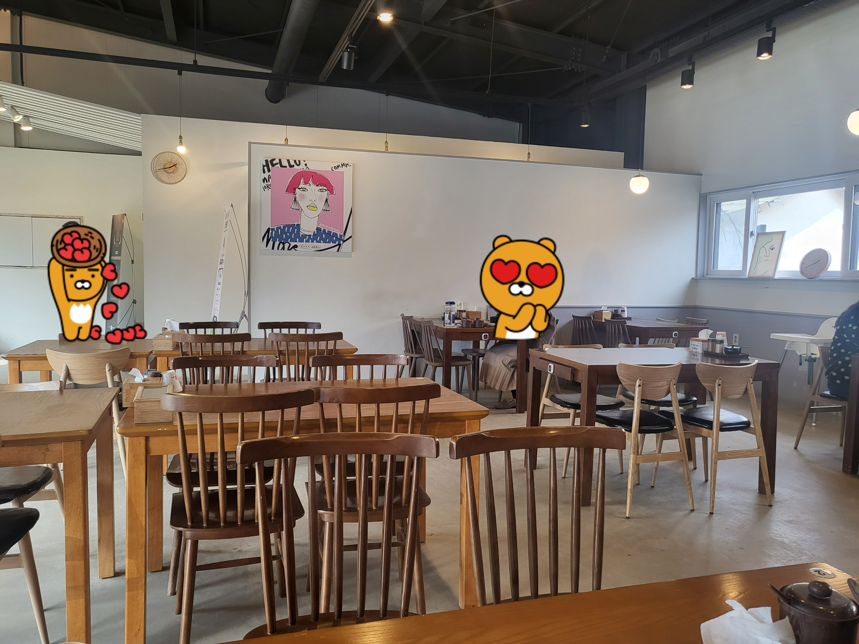 주차를 하고 매장에 들어가 봤는데 아직 지어진지 며칠 안된 매장인 건지 아니면 관리를 잘하시는 건지 매장 안이 정말 깨끗해서 좋더라고요. 나무 테이블에 어린이 의자도 있고 괜찮았는데요. 그리고 그림에 대해서 잘 모르지만 느낌 있는 액자가 하나 있어 사진 한 장 찍어보았습니다. 용인 경자국밥 마스코트로 해도 되지 않을까 싶을 정도로 느낌 있더라고요.