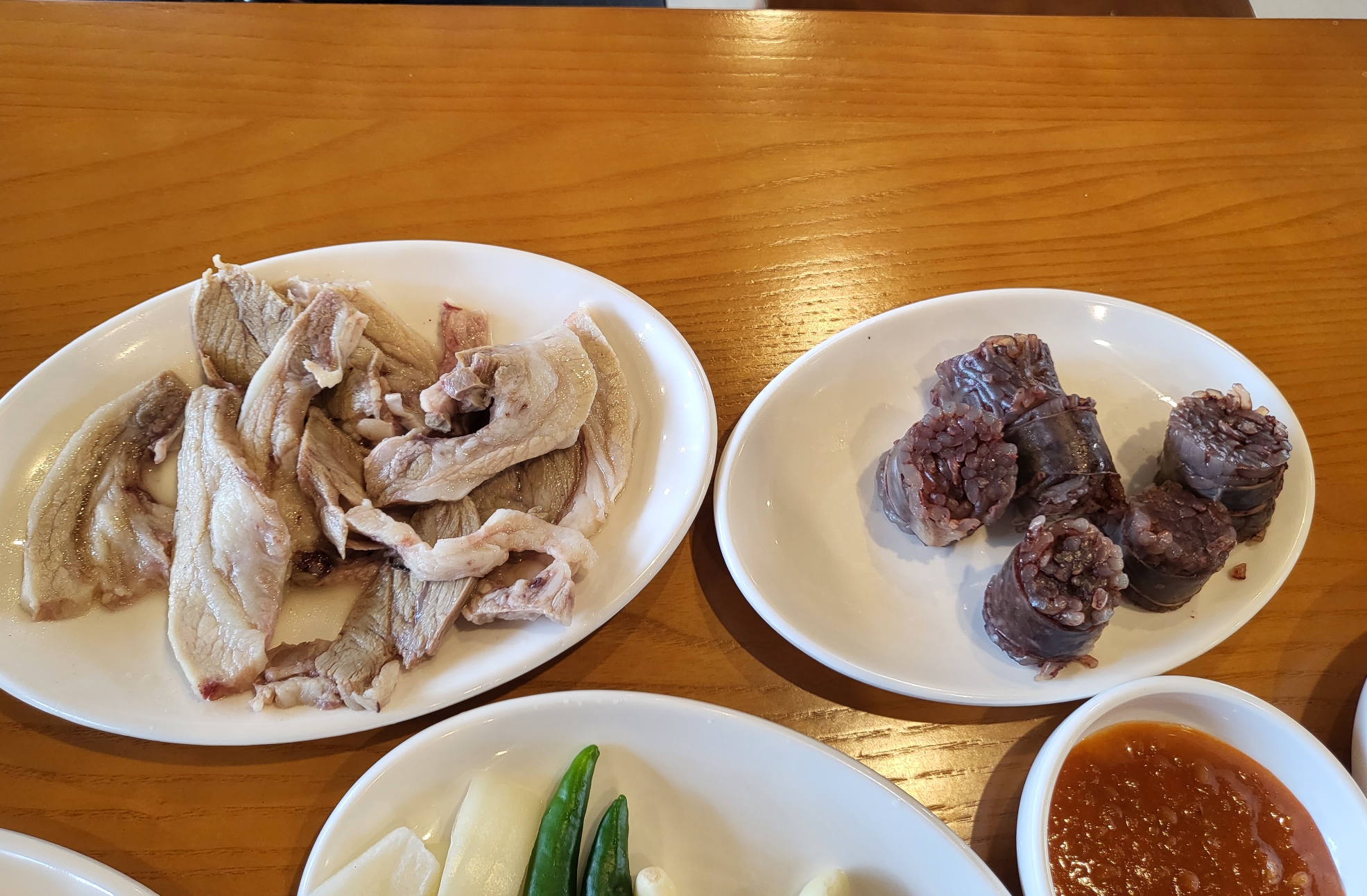 그리고 특 순대국밥을 시켜서 그런 건지 아니면 지인이랑 같이 시켜서 그런 건지 모르겠지만 수육이랑 순대를 맛보기로 먹어보라고 서비스로 주신 것 같더라고요. 너무 감사했습니다.