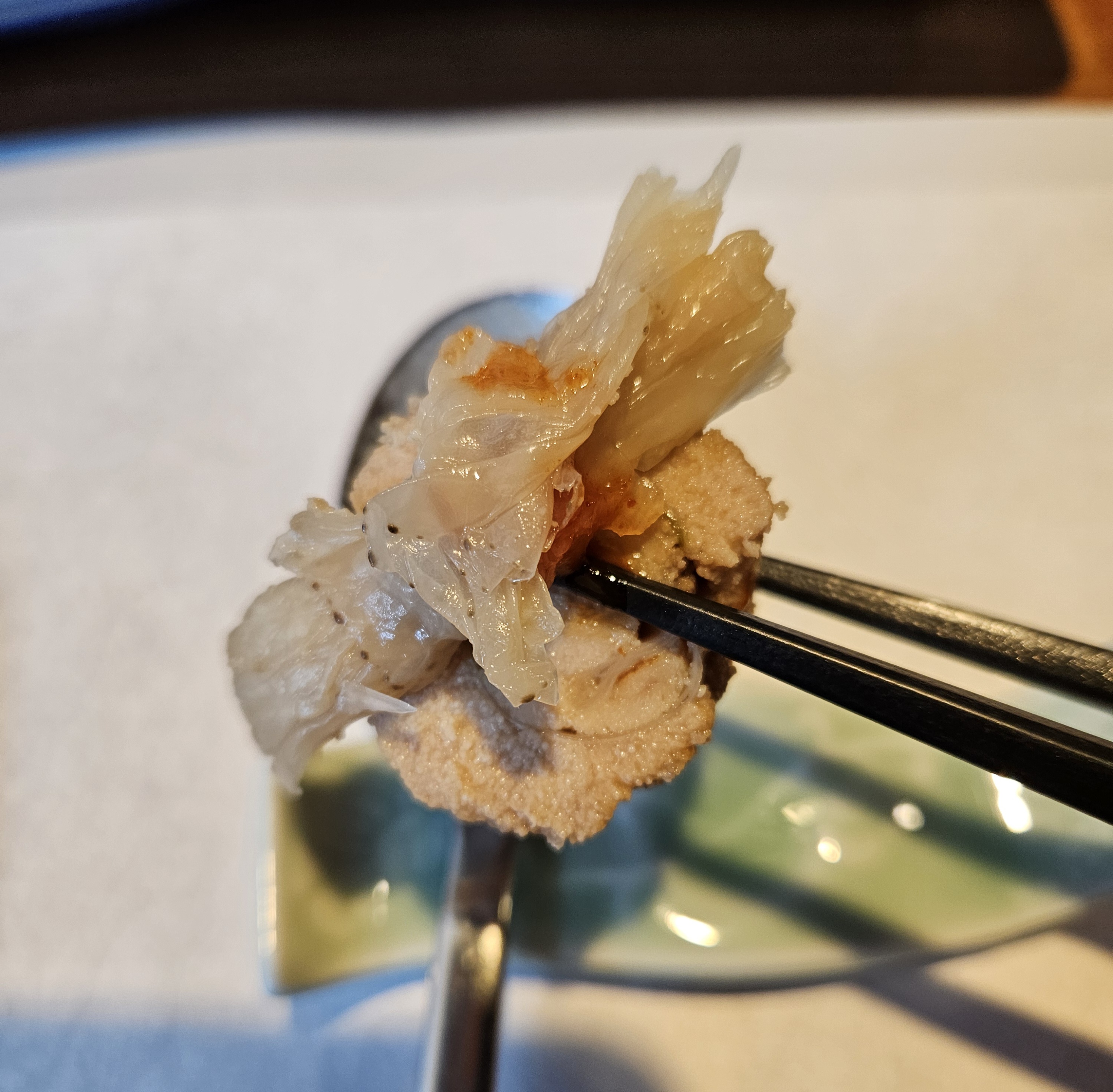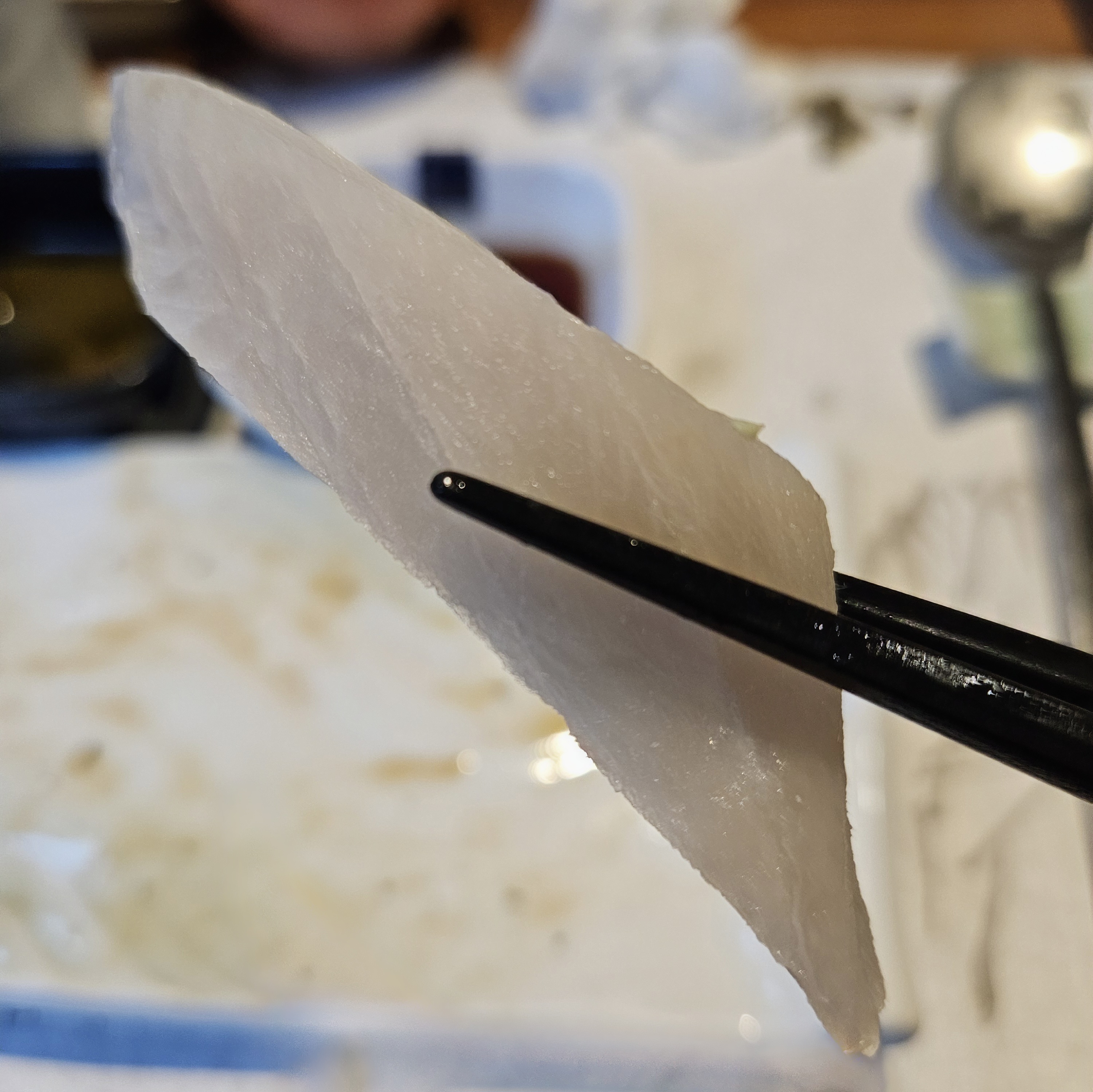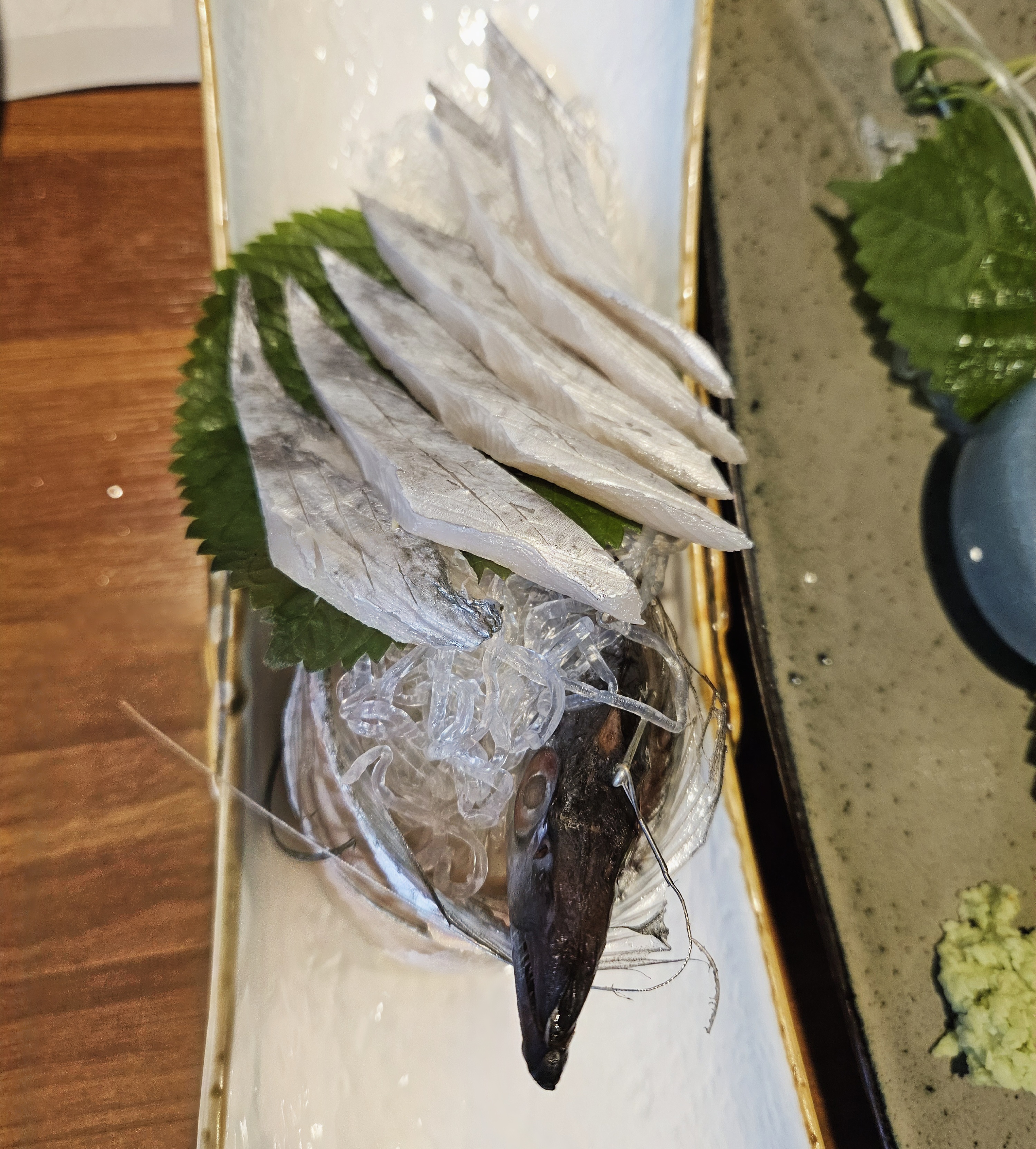 그리고 원래 주시는 건지 모르겠지만 갈치회라고 하시면서 주셨는데 식감이 쫀득한 게 색다르고 맛있더라고요. 생긴 것만 보고 비릴까 봐 걱정했는데 전혀 비린맛 없이 고소하고 맛있었습니다.