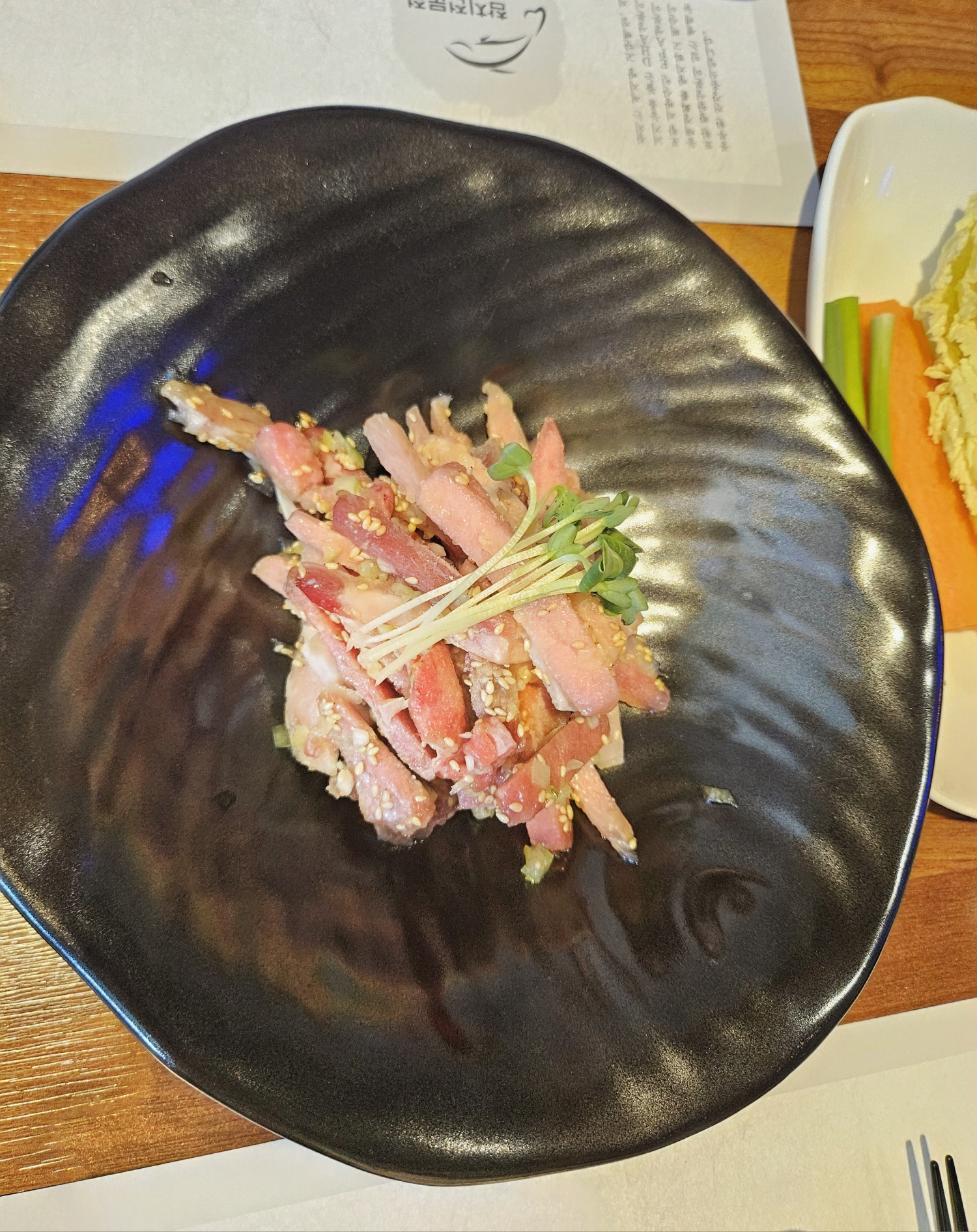다음으로 나온 음식은 바로 참치알 및 편육이 나왔는데요.