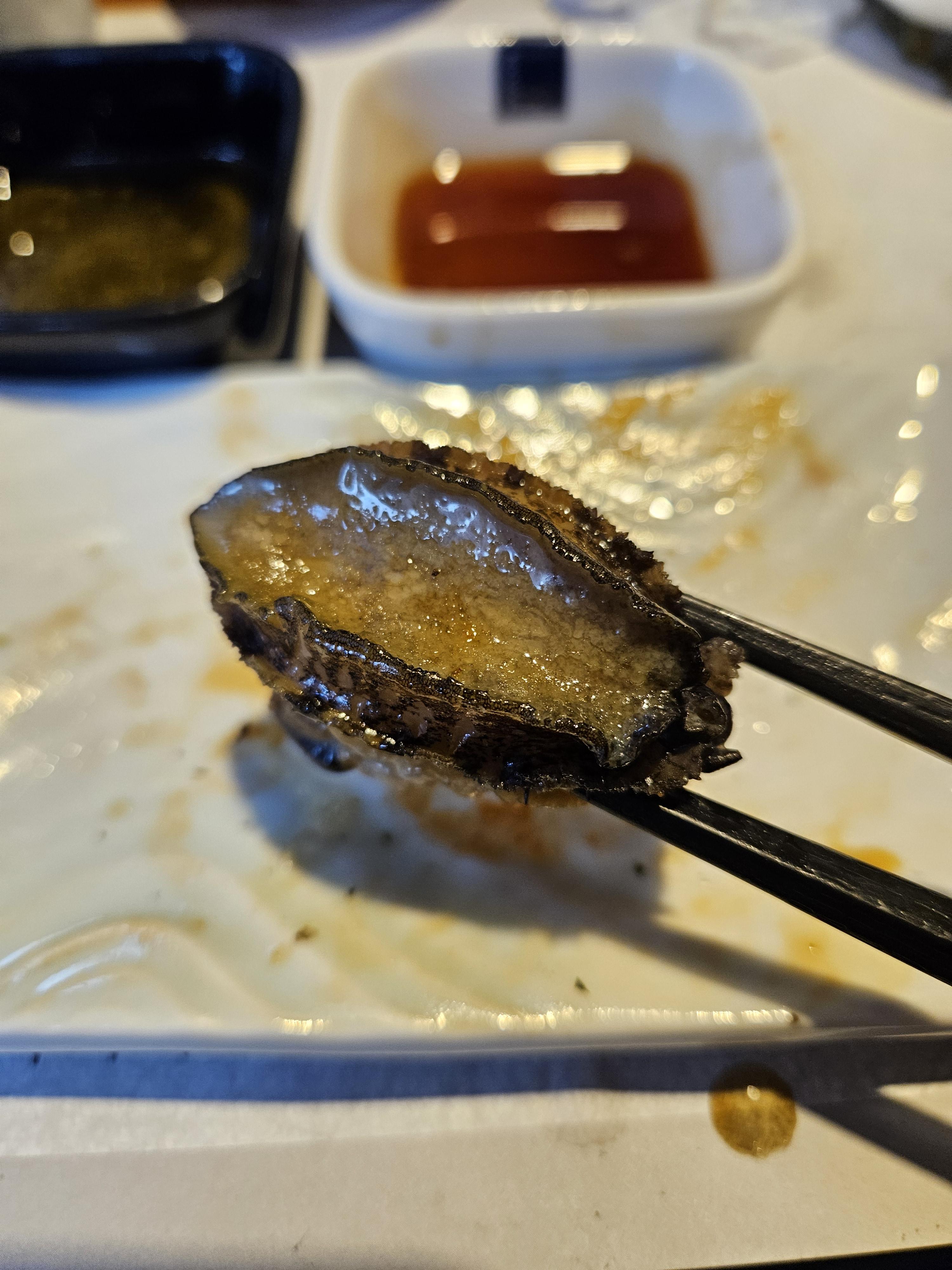 전복이랑 시사모구이는 인원수에 맞게 나왔는데요. 시사모구이는 어찌나 고소하던지. 알도 가득 차있고 머리부터 꼬리까지 싹 다 먹었답니다. 전복은 뭐 통통하고 부드러워서 씹다 보니 그냥 없어지더라고요.