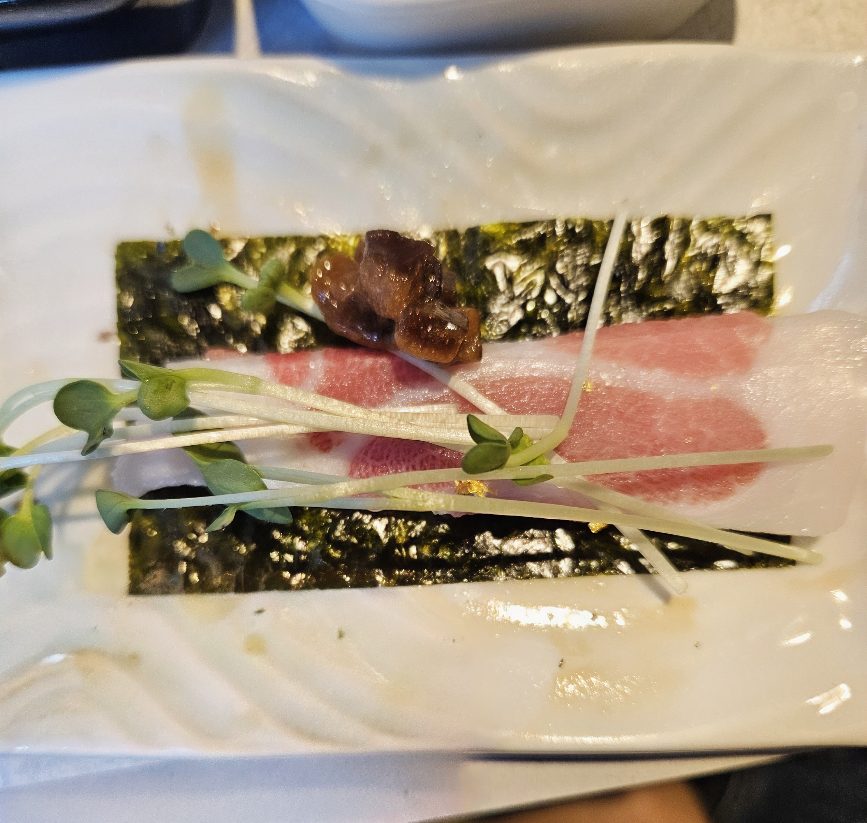 김도 넉넉하게 주셔서 참치를 한 점 한 점 김에 싸 먹을 때마다 어찌나 맛있던지. 오랜만에 먹는 참치회라서 그런지 더욱더 맛있게 느껴졌습니다.