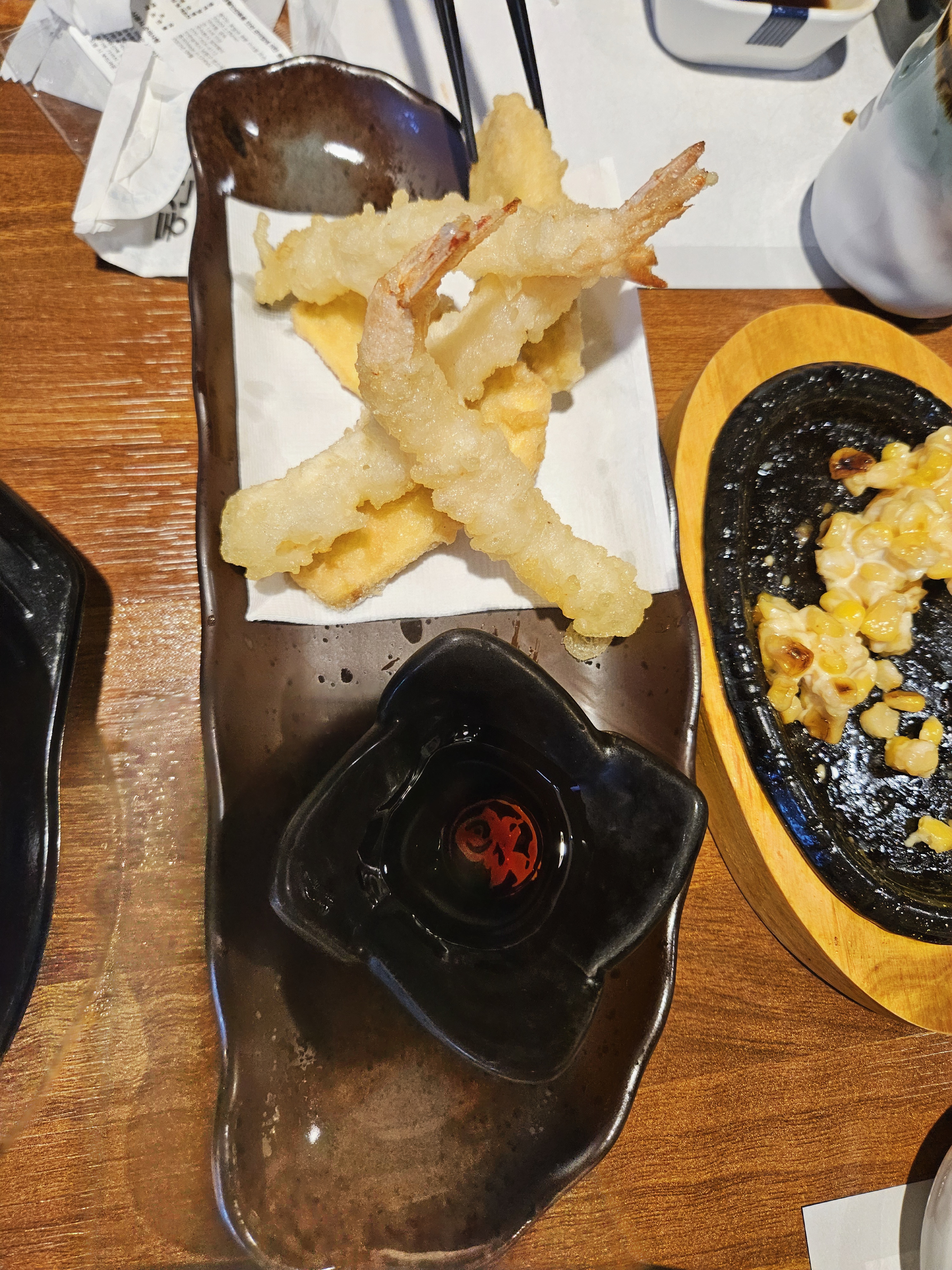 드디어 마지막 새우튀김, 고구마튀김과 마끼가 나왔고 너무 배부른 상태여서 그런지 마끼사진은 못 찍었답니다.