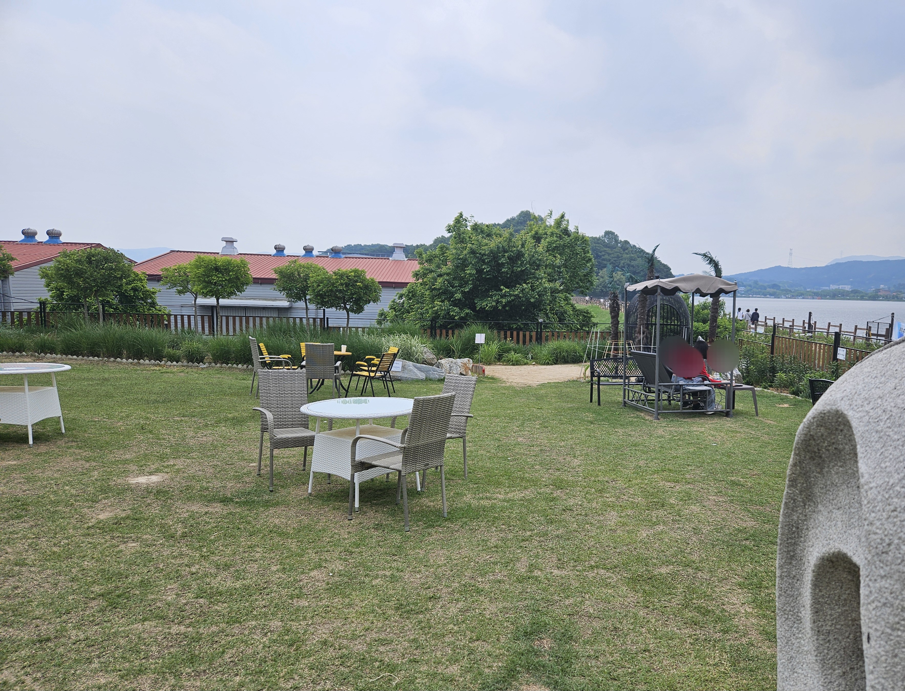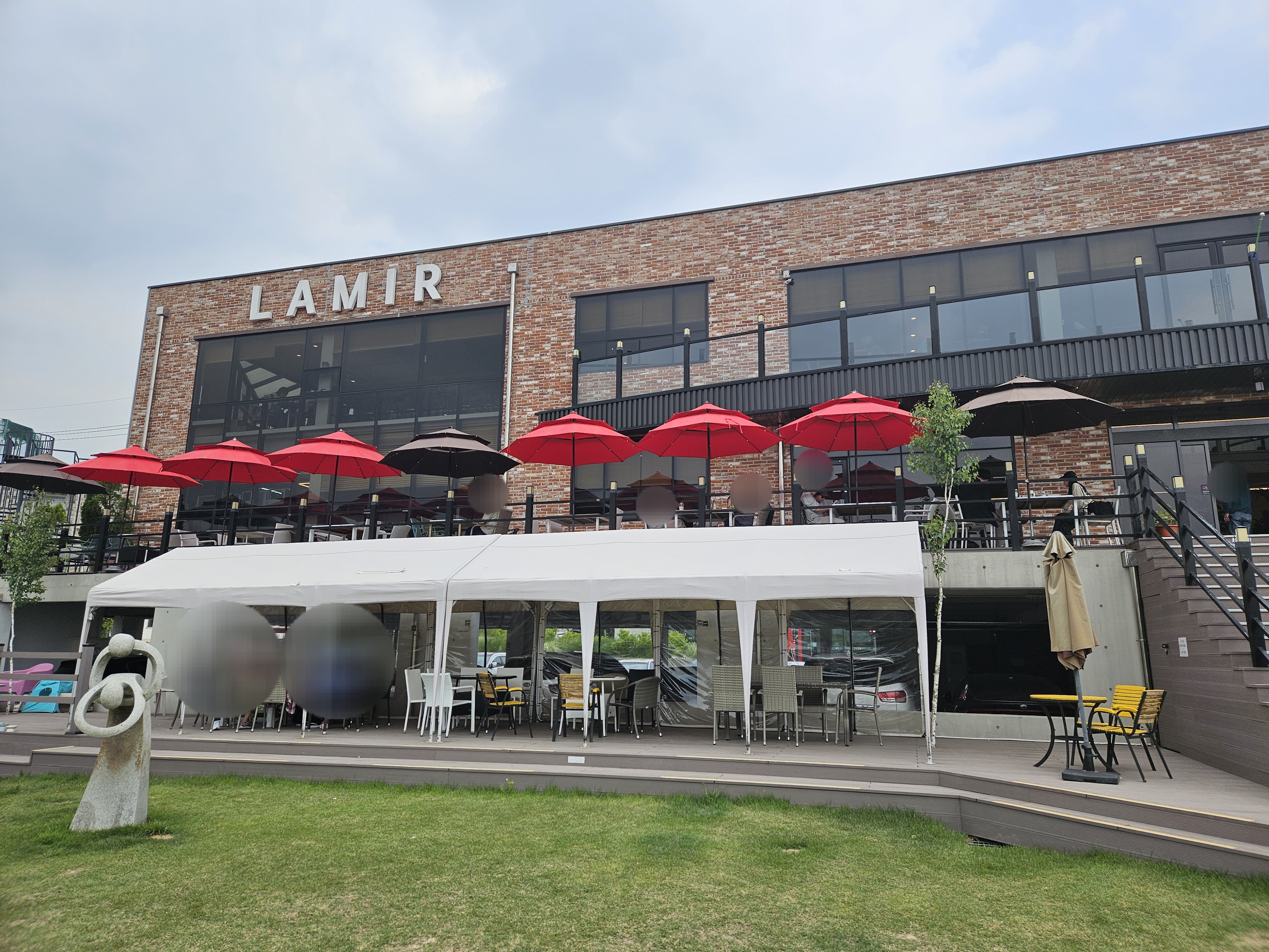 라미르 카페 외부에서 보니 넓고 크더라고요. 저수지가 바로 앞에 있어 바람 불면 시원한지 야외 테이블에 앉아 커피 및 빵을 드시는 분들도 많았는데요.
