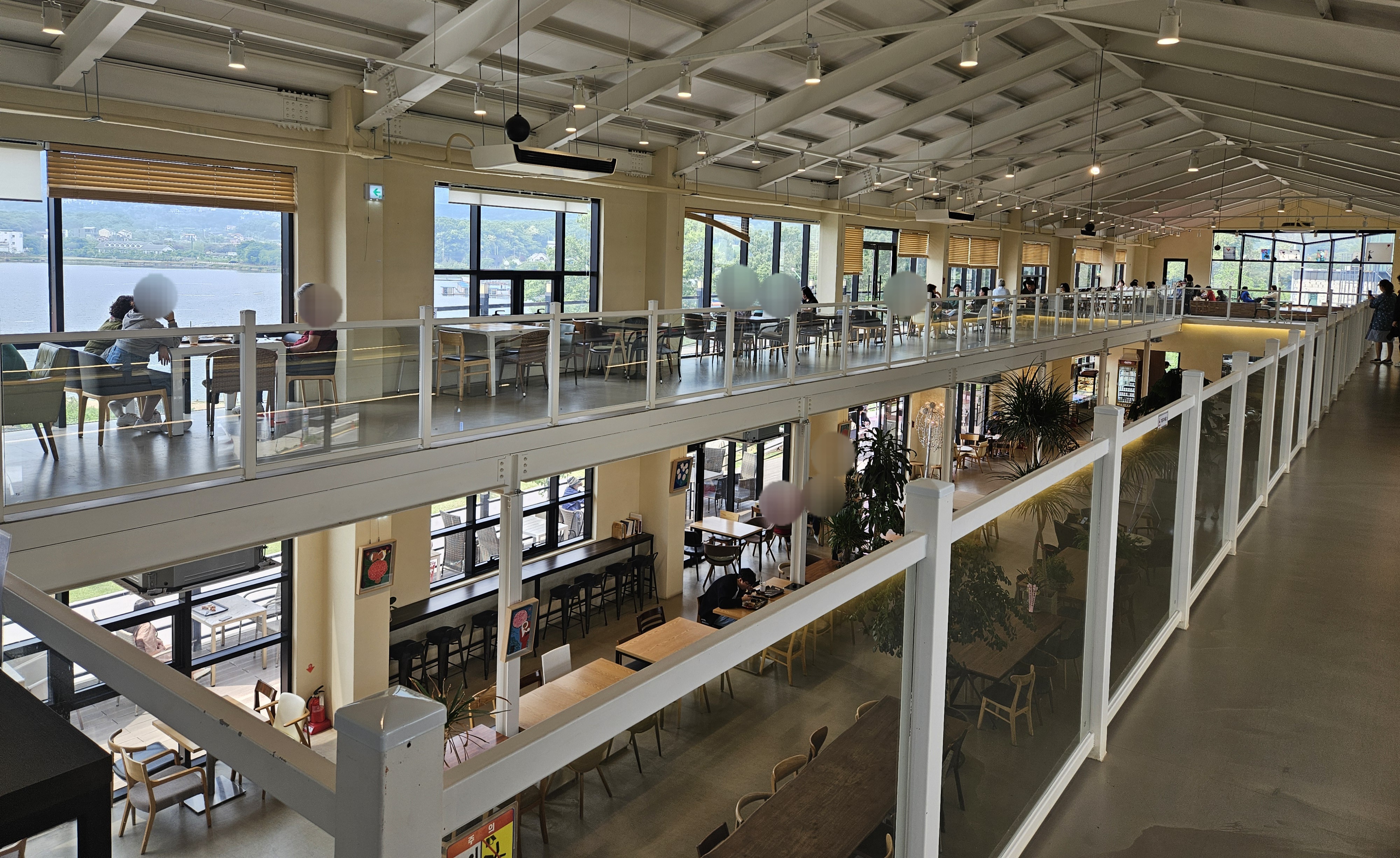 1층 구경 뒤엔 2층도 구경해 보았는데요. 2층 창가 쪽이 뷰가 좋은 맛집이더라고요. 어쩐지 1층보다 2층쪽에 손님들이 많았답니다. 특히 저수지 보이는 창가 쪽에 말이죠.